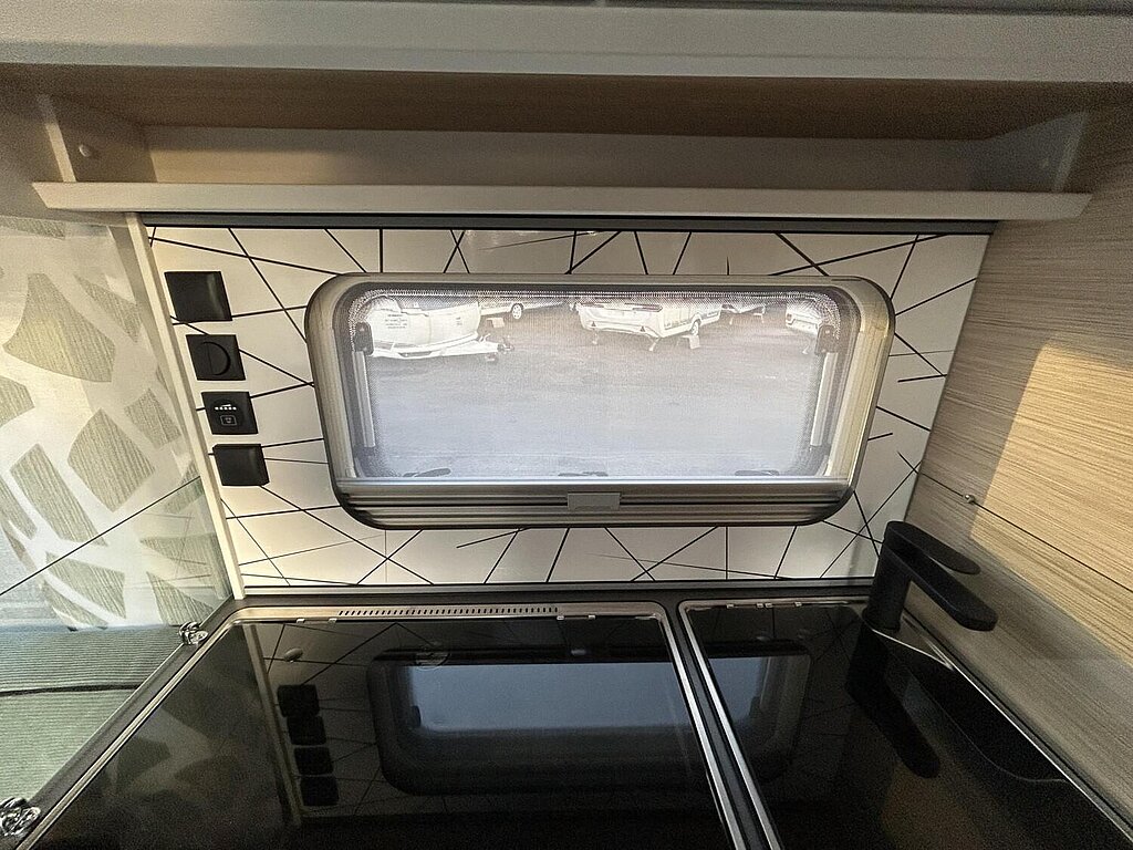 Ausstellfenster doppelt verglast, getönt, mit Einhandbedienung und kombiniertem Fliegenschutz-/Verdunkelungsrollo