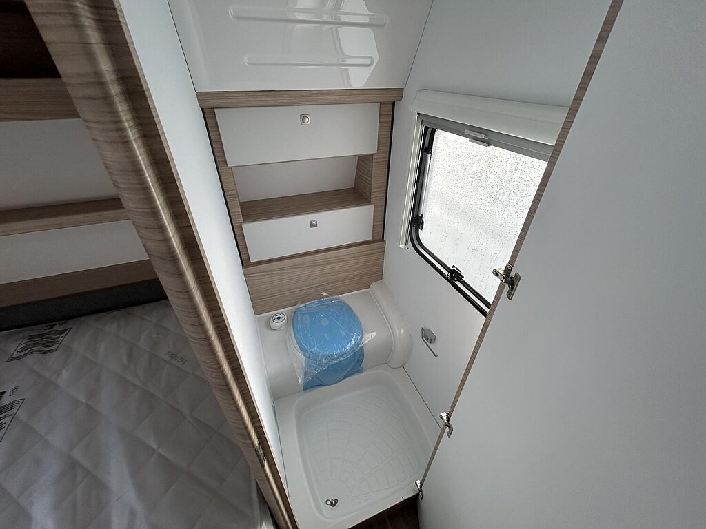 - Ausstellfenster doppelt verglast, getönt, mit Einhandbedienung und kombiniertem Fliegenschutz-/Verdunkelungsrollo