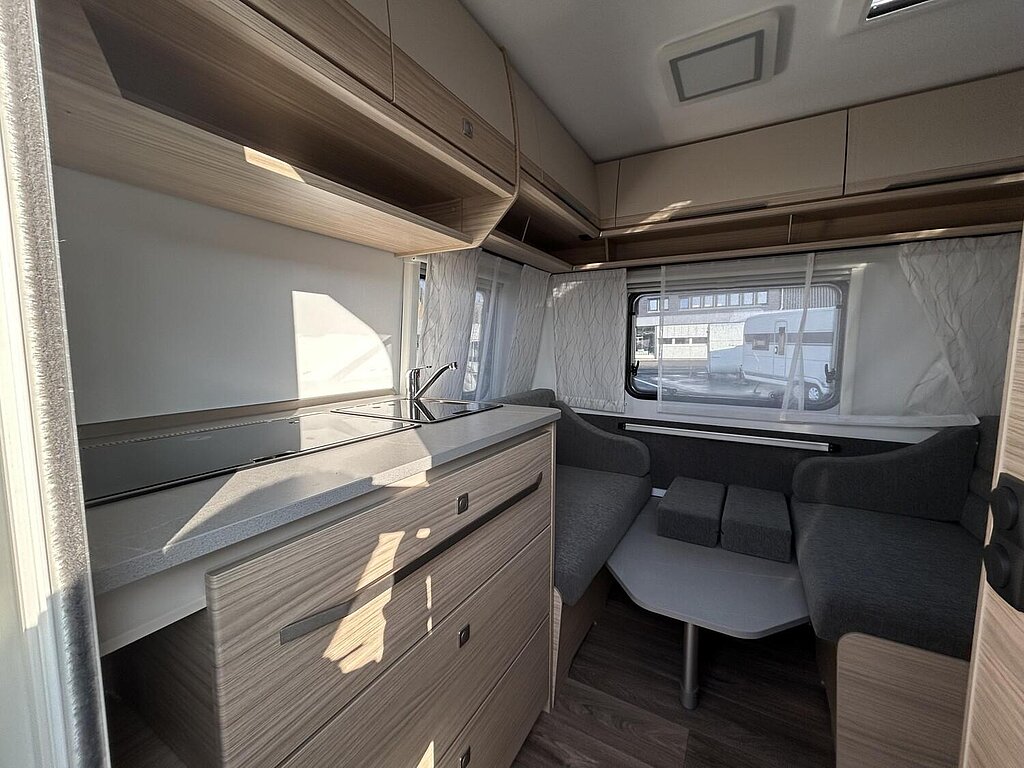 - MIDI-Dachhaube (Dometic) mit Kurbel, Zwangsentlüftung, integriertem Verdunkelungsplissee und Fliegenrollo