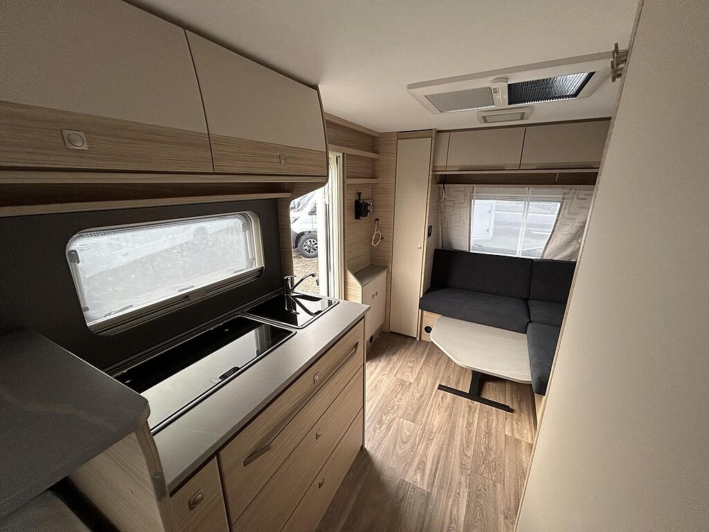 - MIDI-Dachhaube (Dometic) mit Kurbel, Zwangsentlüftung, integriertem Verdunkelungsplissee und Fliegenrollo