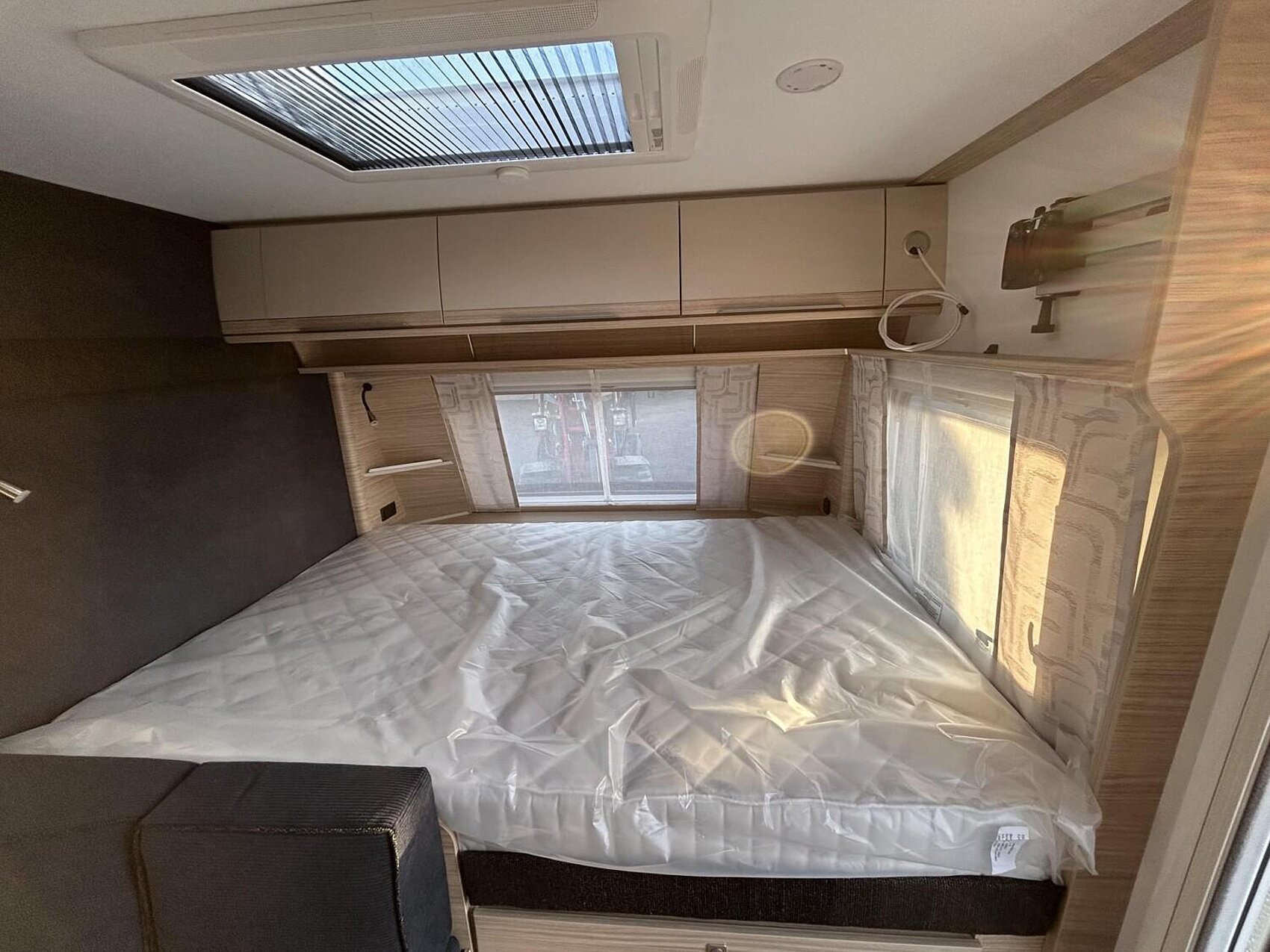 - MIDI-Dachhaube (Dometic) mit Kurbel, Zwangsentlüftung, integriertem Verdunkelungsplissee und Fliegenrollo