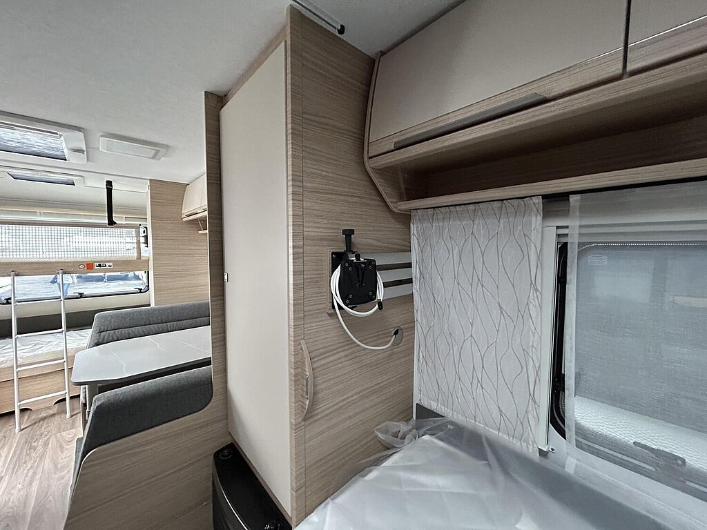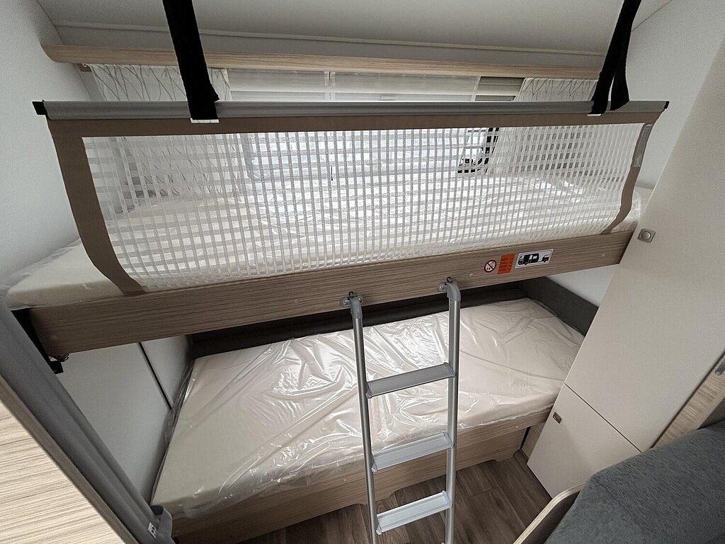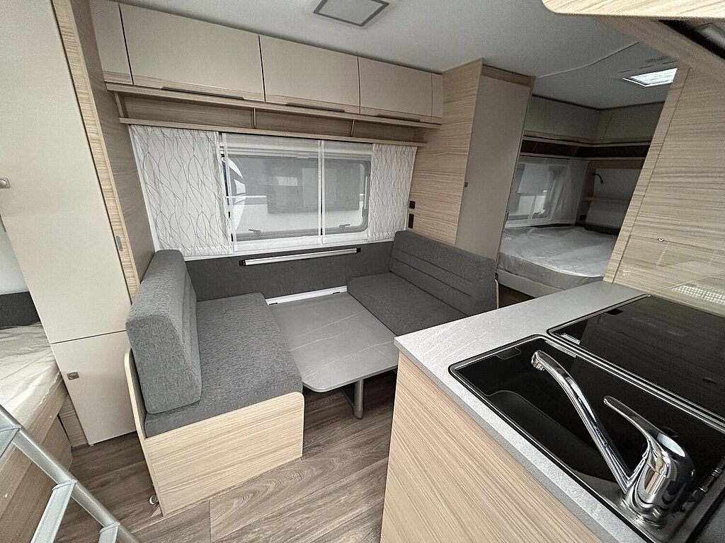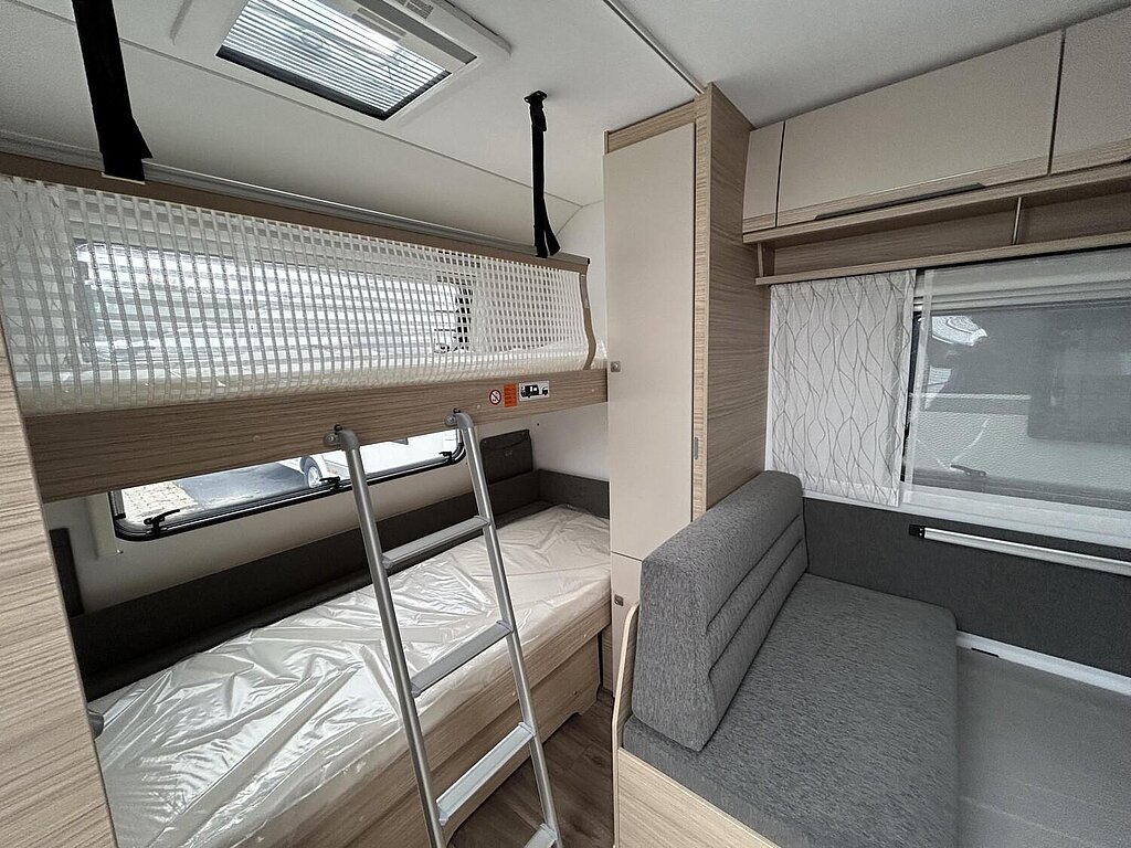 Ausgestattet mit einem französischem Bett, Kinderbetten, einer modernen Küchenzeile und einer großzügigen Mittelsitzgruppe wird jeder Campingurlaub zur erholsamen Auszeit.