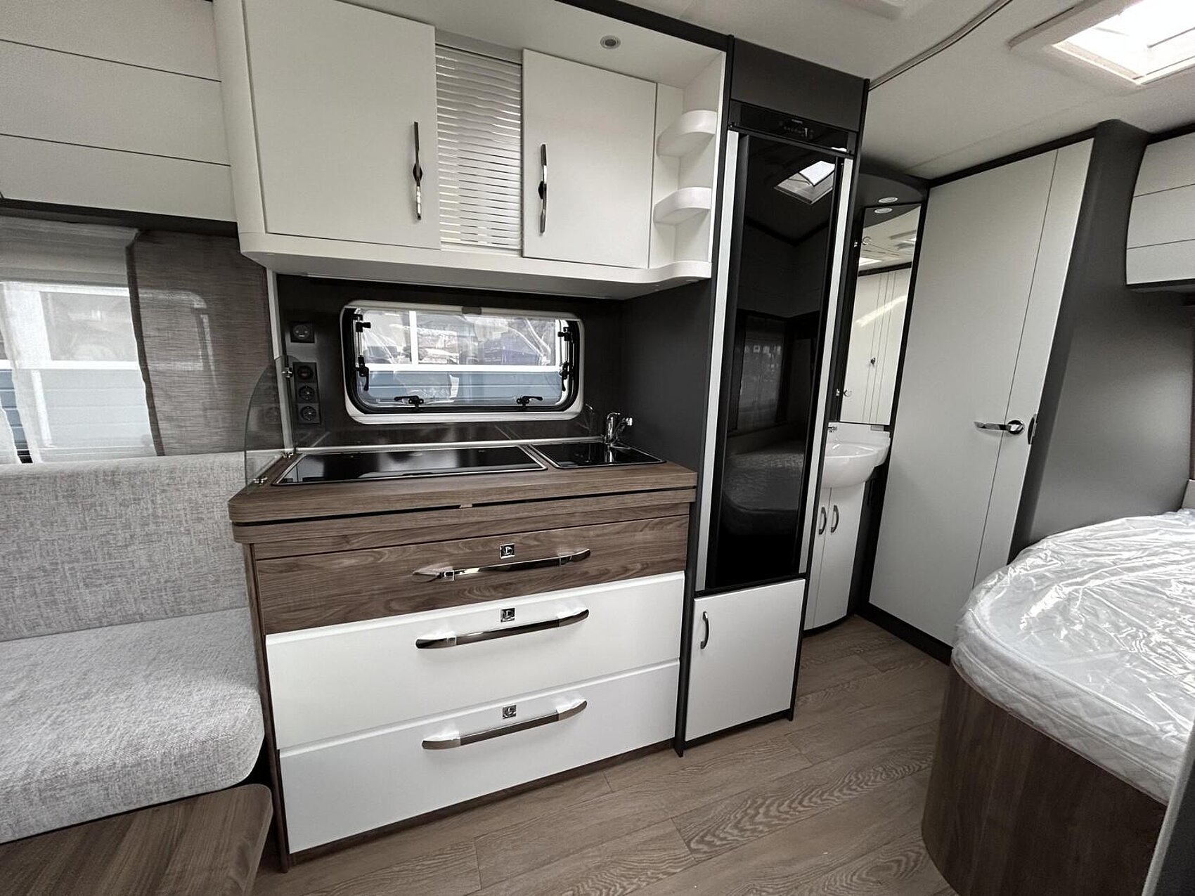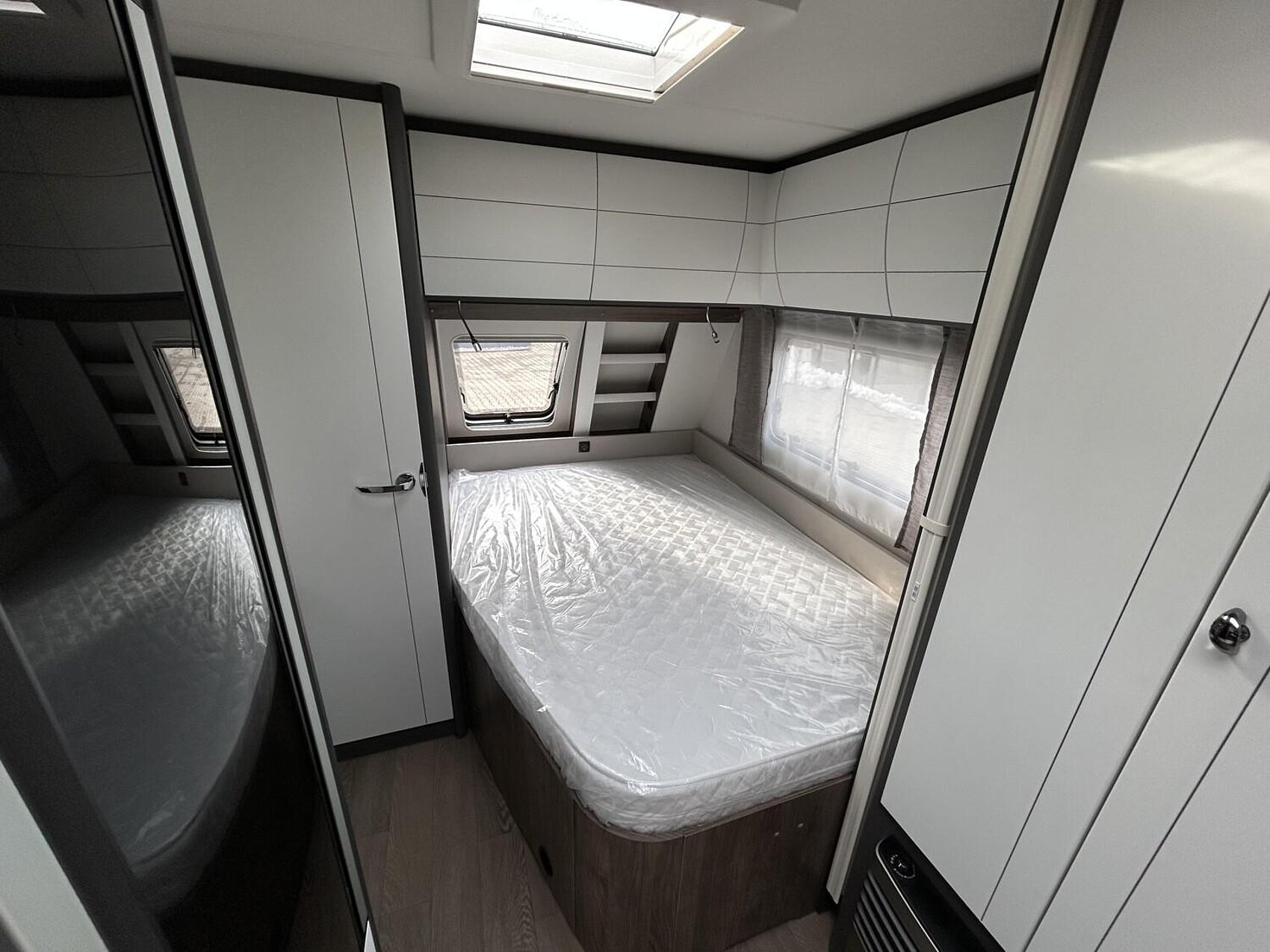 Dachhaube DOMETIC SEITZ Midi-Heki 70 x 50 cm im Wohnraum, Micro-Heki 28 x 28 cm im Waschraum, jeweils mit Verdunkelungs- und Insektenschutzplissee