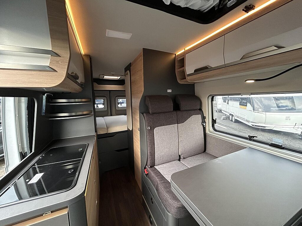 Funline-Paket (Front- und Seitenscheibenverdunklung, Isolierhaube Abwassertank, beheizbar, TRUMA CP-Plus, digitales Heizungsbedienpanel, Einstiegstufe elektrisch (Breite: 70 cm), Markise 375 x 250 cm, anthrazit, Lichtsteuerung)