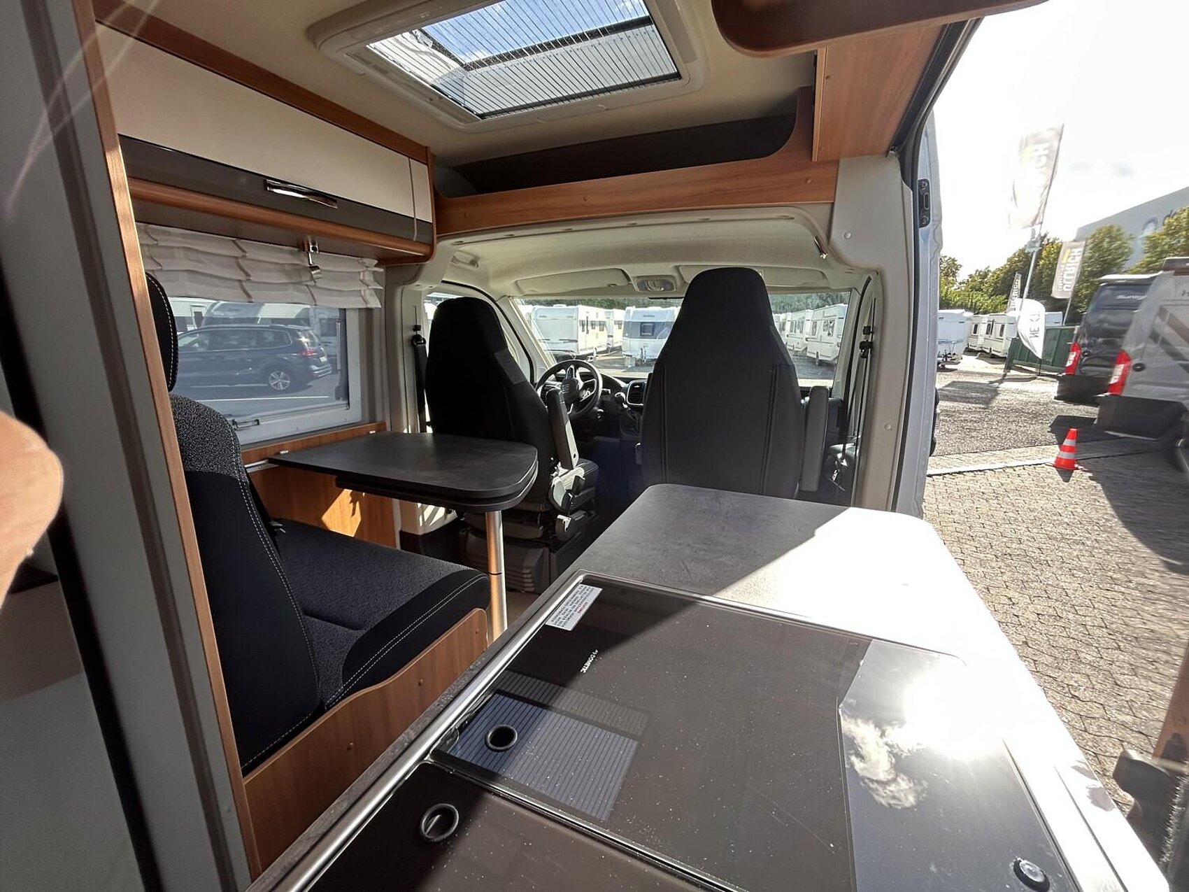 Plus Paket (Alufelgen 16", DAB Antenne im Außenspiegel, USB Ladeanschluß, Techno-Trim Armaturenbrett, Getränkehalterung + Halterung für Smartphone/Tablet, Radiovorrüstung mit 4 LS, Außenspiegel elektr. verstell- und beheizbar, Captain Chair drehbar, Bedientasten für Radio am Lenkrad, Nebelscheinwerfer, Lederlenkrad, Fahrerhausverd., Trittstufe Omnist.,Ladebooster, Seitz S4 Luxusfenster, Tricolor Ambienteklappe, Klimaautomatik, Induktive Ladestation, Lackierte Stoßfänger/Radlaufverbreiterung, Digitales Cockpit)