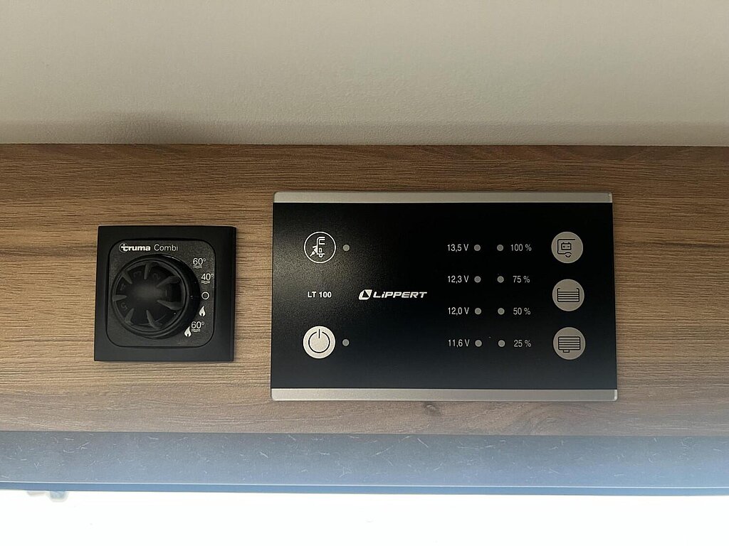Active Paket (Fiat) (Alufelge 16 Zoll (Manuelles Getriebe: Felgen Schwarz, Automatik/ Maxi: Felgen Bicolor), Lenkrad und Schaltknauf in Lederausführung, Techno Trim, Tablet Holder, DAB Antenne im Spiegel, Lautsprecher, Lenkradbedienung Radio, Falt-Sichtschutz in Fahrerhaus: Frontscheibe, Falt-Sichtschutz in Fahrerhaus: Seitenscheiben, Fliegengittertür, Elektrische Einstiegsstufe, Fenster im Bad, Dachhaube Midi-Heki 70 x 50 cm über der Sitzgruppe mit Fliegenschutz und Verdunklungsrollo, Drehplatte für Tischerweiterung, Kabelvorbereitung für Rückfahrkamera, Vorbereitung Solarmodule, TV-Vorbereitung 12 V und TV-Steckdose, SAT-Anschluss, LED-Lichtröhre in der Küche, 230-V-Steckdose im Oberschrank Bug links (Sitzgruppe), 12-V-Steckdose im Heckbereich links unten, Zusätzliche Doppel-USB-Steckdose im Bug links)
