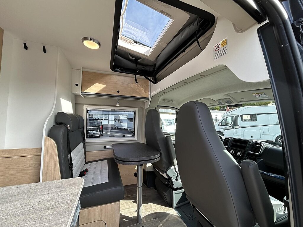 Adventure Ausstattung 600 (Fiat Ducato 3.500 kg | 2.2 Multijet | 103 kW | 140 PS Euro 6 | 6-Gang-Schaltgetriebe, Fiat Weiß, Adventure Beklebung, Wohnwelt Adventure, Markise (schwarz), Panoramadachhaube 70 x 50 cm, Duschausstattung, Fenster im Bad, Kleiderstange in der Nasszelle, Breite Einstiegsstufe, Drehplatte für Tischerweiterung an der Sitzgruppe, Stoßfänger lackiert, Skid Plate Schwarz, Nebelscheinwerfer, Lenkrad & Schaltknauf in Lederausführung, Luftauslässe mit Applikationen Silber (Techno-Trim), 16" Alufelgen Bi-Color)