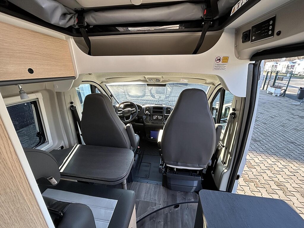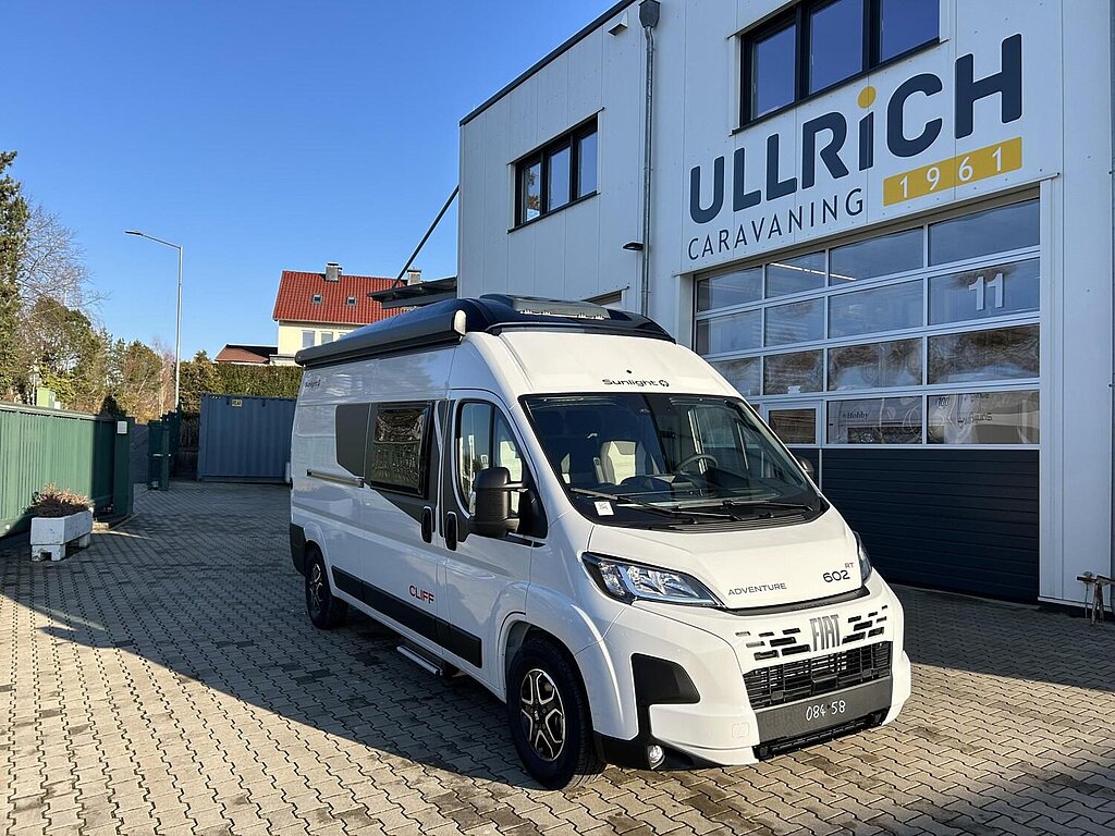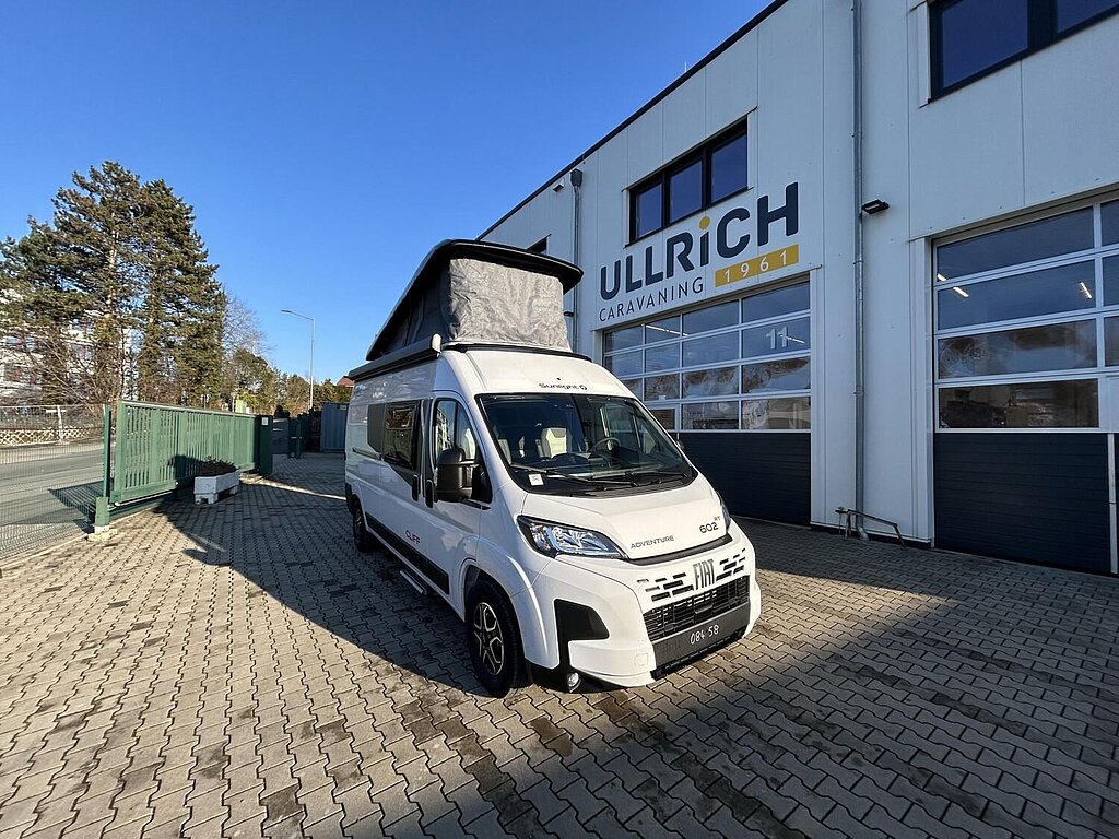Adventure Ausstattung 602 (Fiat Ducato 3.500 kg | 2.2 | 103 kW | 140 PS Euro 6 | 6-Gang-Schaltgetriebe, Fiat Weiß, Adventure Beklebung, Wohnwelt Adventure, Markise (schwarz), Panoramadachhaube 70 x 50 cm, Duschausstattung, Fenster im Bad, Kleiderstange in der Nasszelle, Breite Einstiegsstufe, Drehplatte für Tischerweiterung an der Sitzgruppe, Stoßfänger lackiert, Skid Plate Schwarz, Nebelscheinwerfer, Lenkrad & Schaltknauf in Lederausführung, Luftauslässe mit Applikationen Silber (Techno-Trim), 16" Alufelgen Bi-Color)