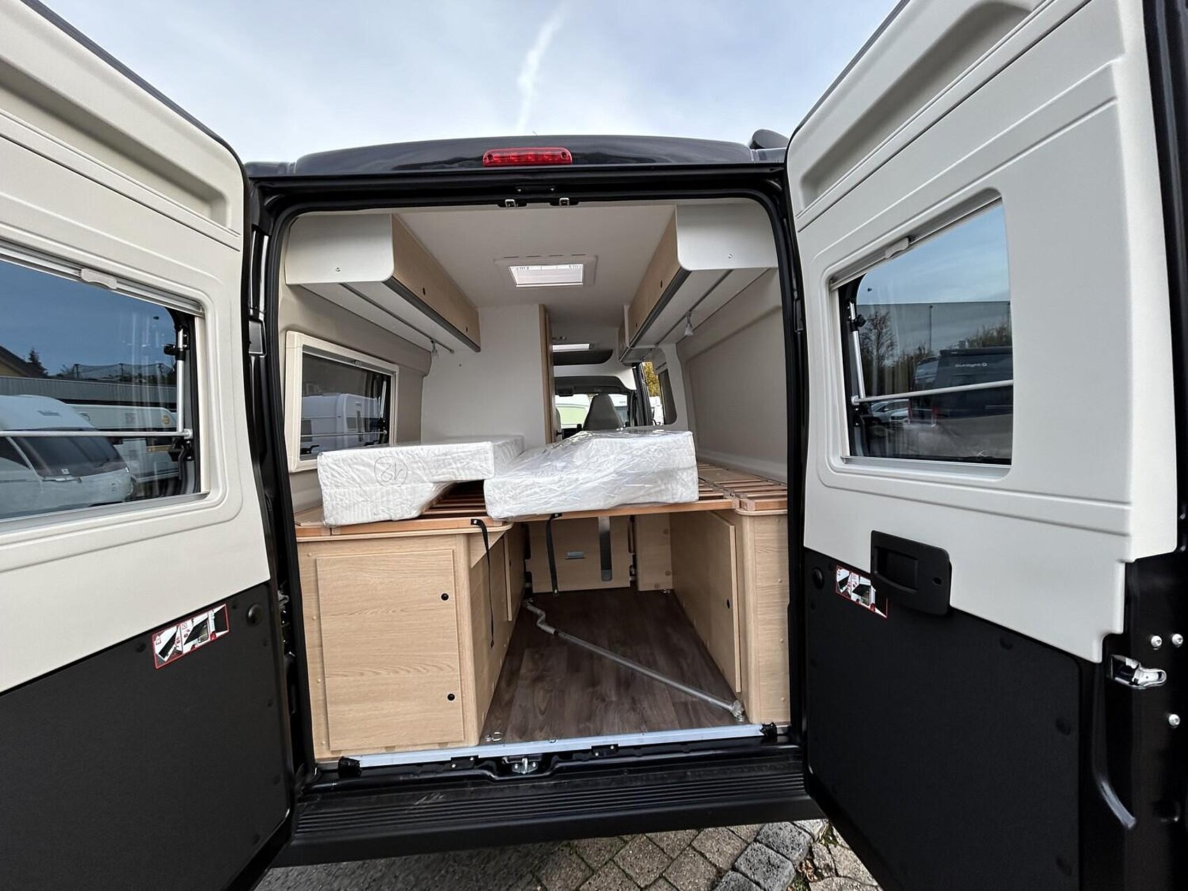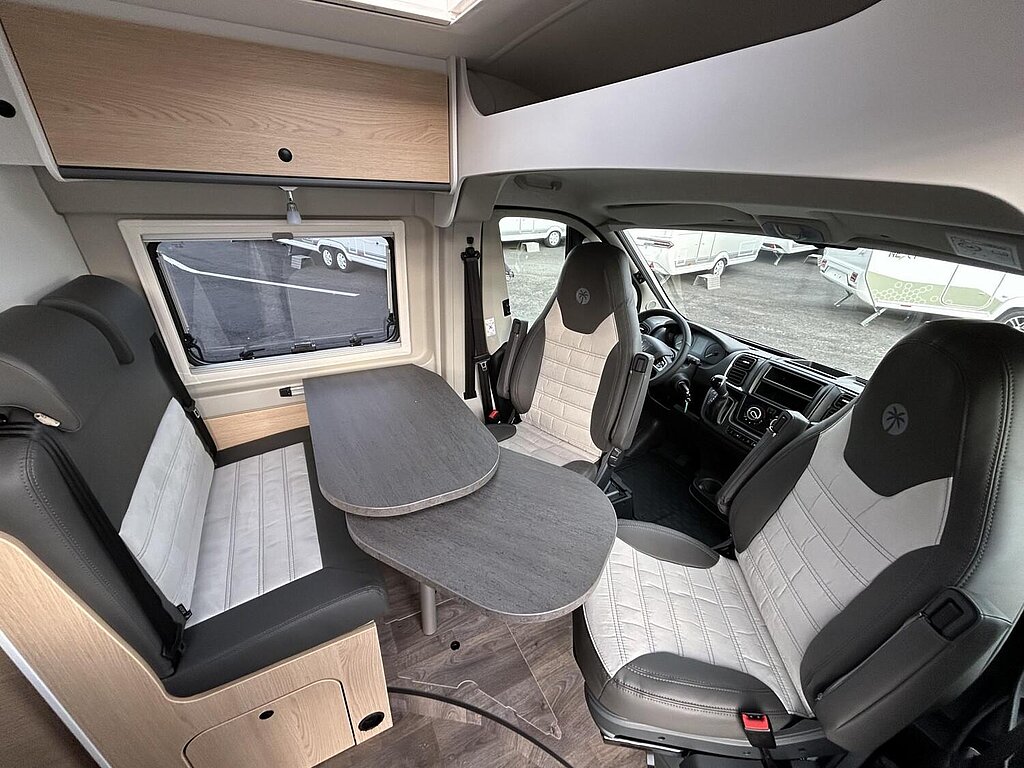Adventure Ausstattung 640 (Fiat Ducato 3.500 kg | 2.2 Multijet | 103 kW | 140 PS Euro 6 | 6-Gang-Schaltgetriebe, Fiat Weiß, Adventure Beklebung, Wohnwelt Adventure, Markise (schwarz), Panoramadachhaube 70 x 50 cm, Duschausstattung, Fenster im Bad, Kleiderstange in der Nasszelle, Breite Einstiegsstufe, Drehplatte für Tischerweiterung an der Sitzgruppe, Stoßfänger lackiert, Skid Plate Schwarz, Nebelscheinwerfer, Lenkrad & Schaltknauf in Lederausführung, Luftauslässe mit Applikationen Silber (Techno-Trim), 16" Alufelgen Bi-Color)
