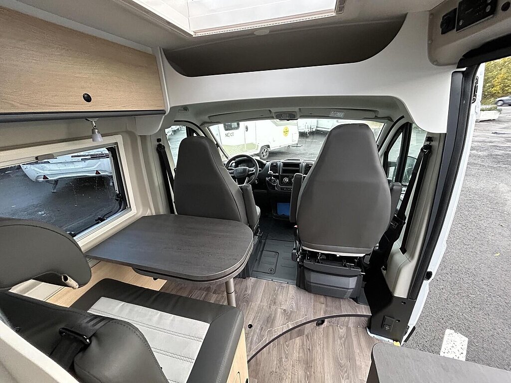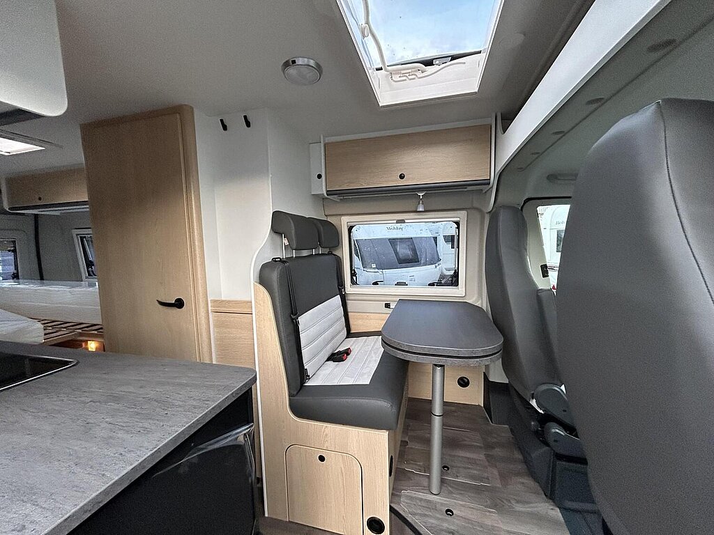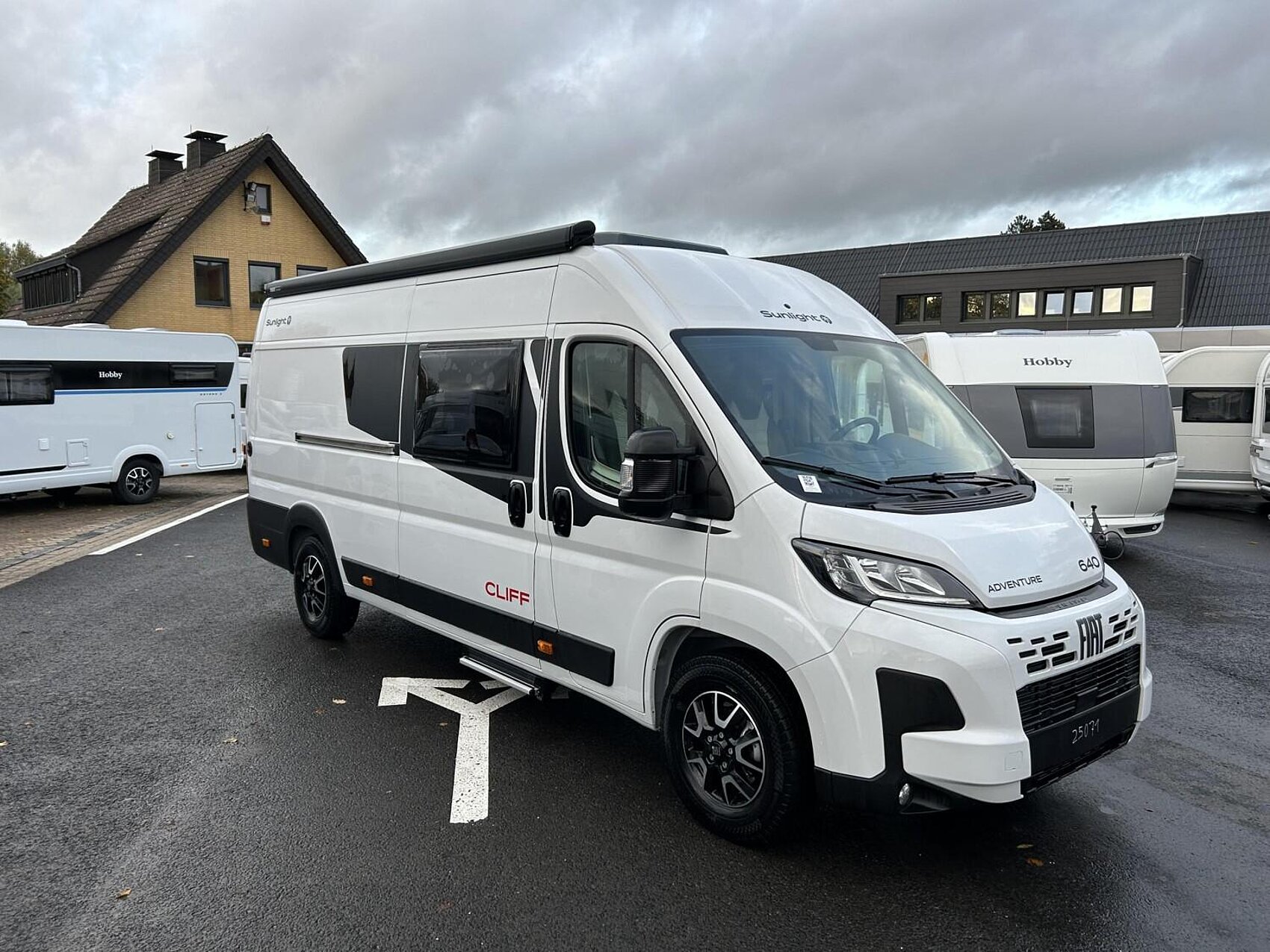 Adventure Ausstattung 640 (Fiat Ducato 3.500 kg | 2.2 Multijet | 103 kW | 140 PS Euro 6 | 6-Gang-Schaltgetriebe, Fiat Weiß, Adventure Beklebung, Wohnwelt Adventure, Markise (schwarz), Panoramadachhaube 70 x 50 cm, Duschausstattung, Fenster im Bad, Kleiderstange in der Nasszelle, Breite Einstiegsstufe, Drehplatte für Tischerweiterung an der Sitzgruppe, Stoßfänger lackiert, Skid Plate Schwarz, Nebelscheinwerfer, Lenkrad & Schaltknauf in Lederausführung, Luftauslässe mit Applikationen Silber (Techno-Trim), 16" Alufelgen Bi-Color)