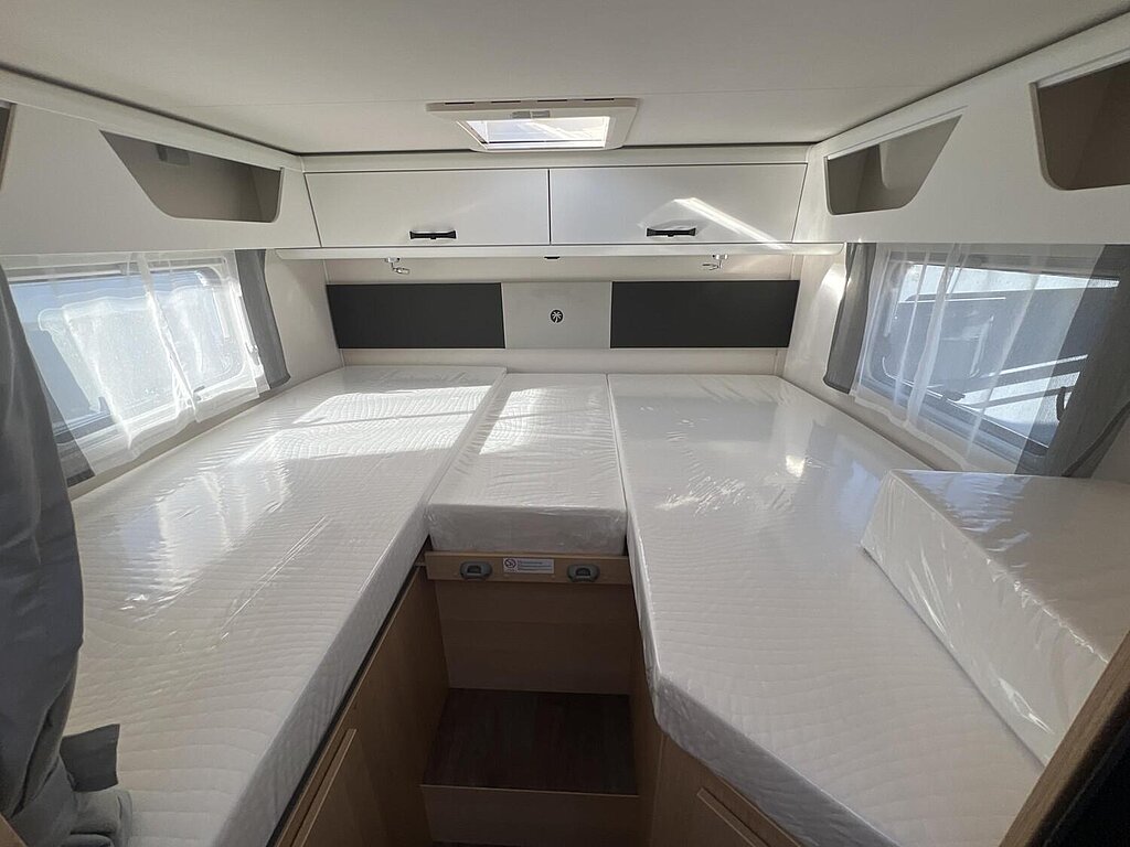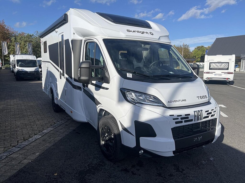 Adventure Ausstattung 66S (Fiat Ducato 3.500 kg | 2.2 | 103 kW | 140 PS Euro 6 | 6-Gang-Schaltgetriebe, Fiat Weiß, Adventure Beklebung, Wohnwelt Adventure, Design Applikation Heck, Fenster in Fronthaube, Rahmenfenster, 2. Außenstauraumklappe (Größe modellabhängig), Kühlschrank 137 l mit Gefrierfach 15 l, Bettenumbau Einzelbett zu Doppelbett, Paket One Black (Markise, Fahrradträger 3-fach), Bridge Light, Komfort Eingangstür mit Fenster, Fliegengittertür (einteilig), Panoramadachhaube 70 x 50 cm, Klarglasdachhaube 40 x 40 cm, Stoßfänger lackiert, Skid Plate Schwarz, Nebelscheinwerfer, Lenkrad & Schaltknauf in Lederausführung, Luftauslässe mit Applikationen Silber (Techno-Trim), 16" Alufelgen Bi-Color)