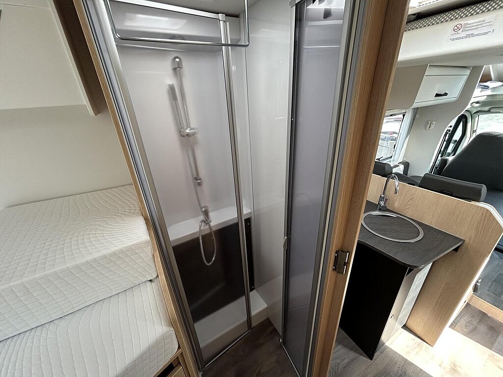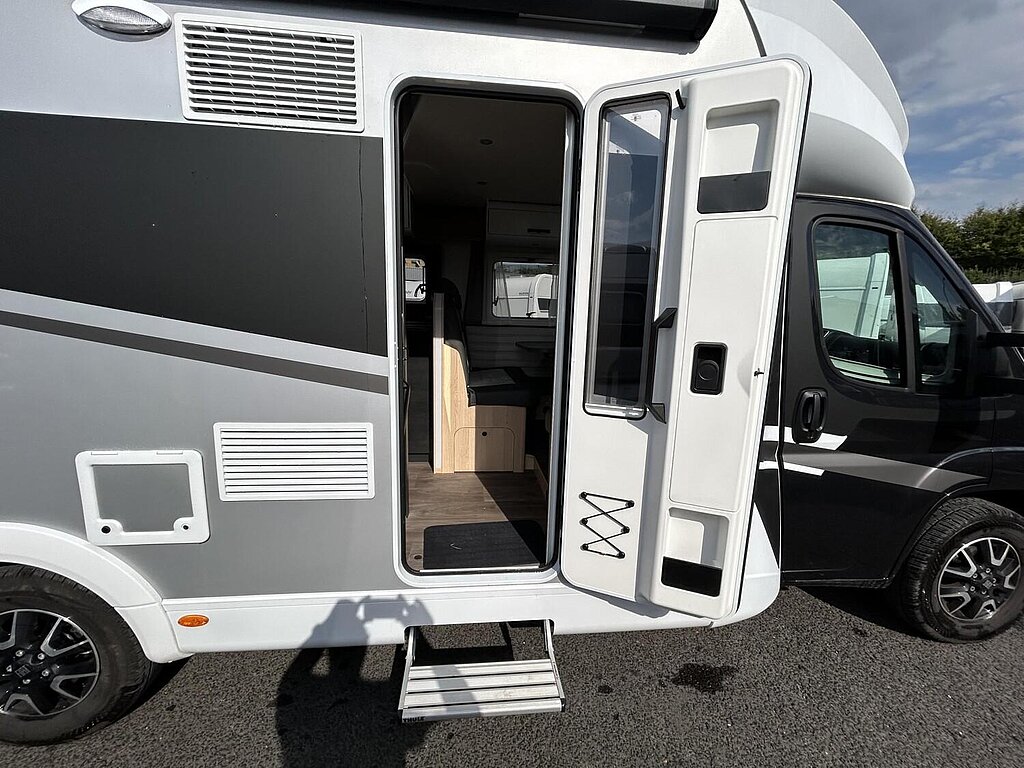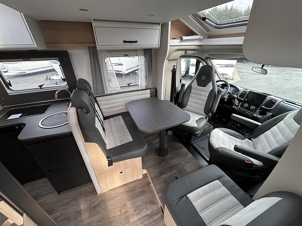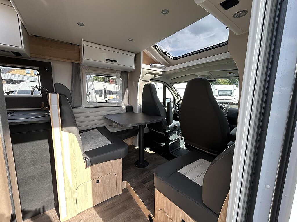 Adventure Ausstattung 68 (Fiat Ducato 3.500 kg | 2.2 Multijet | 103 kW | 140 PS Euro 6 | 6-Gang-Schaltgetriebe, Chassisfarbe Weiß, Adventure Beklebung, Wohnwelt Adventure, Design Applikation Heck, Fenster in Fronthaube, Rahmenfenster, 2. Außenstauraumklappe (Größe modellabhängig), Großer Kühlschrank 156 l mit separatem Frosterfach 29 l, Bettenumbau Einzelbett zu Doppelbett, Paket One Black (Markise, Fahrradträger 3-fach), Bridge Light, Komfort Eingangstür mit Fenster, Fliegengittertür (einteilig), Panoramadachhaube 70 x 50 cm, Klarglasdachhaube 40 x 40 cm, Stoßfänger lackiert, Skid Plate Schwarz, Nebelscheinwerfer, Lenkrad & Schaltknauf in Lederausführung, Luftauslässe mit Applikationen Silber (Techno-Trim), 16" Alufelgen Bi-Color)