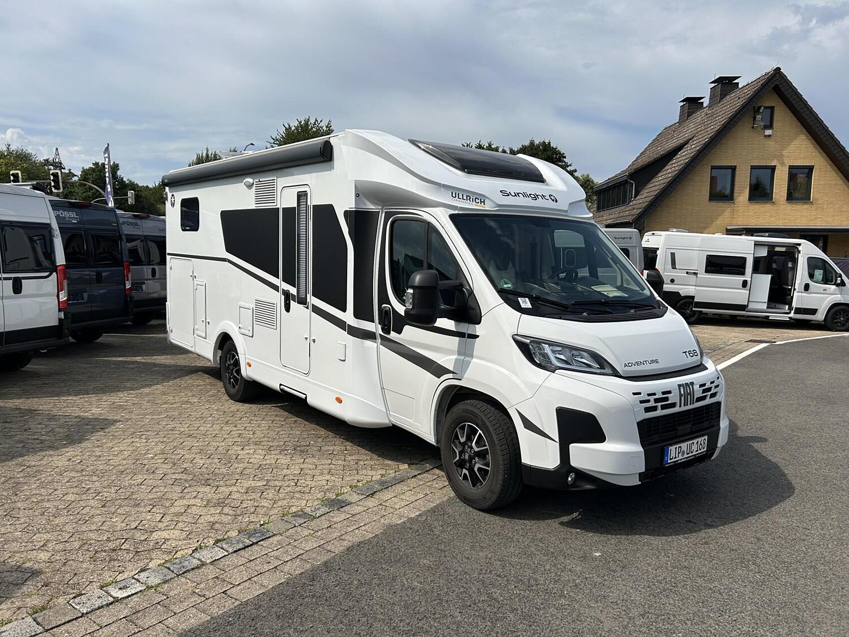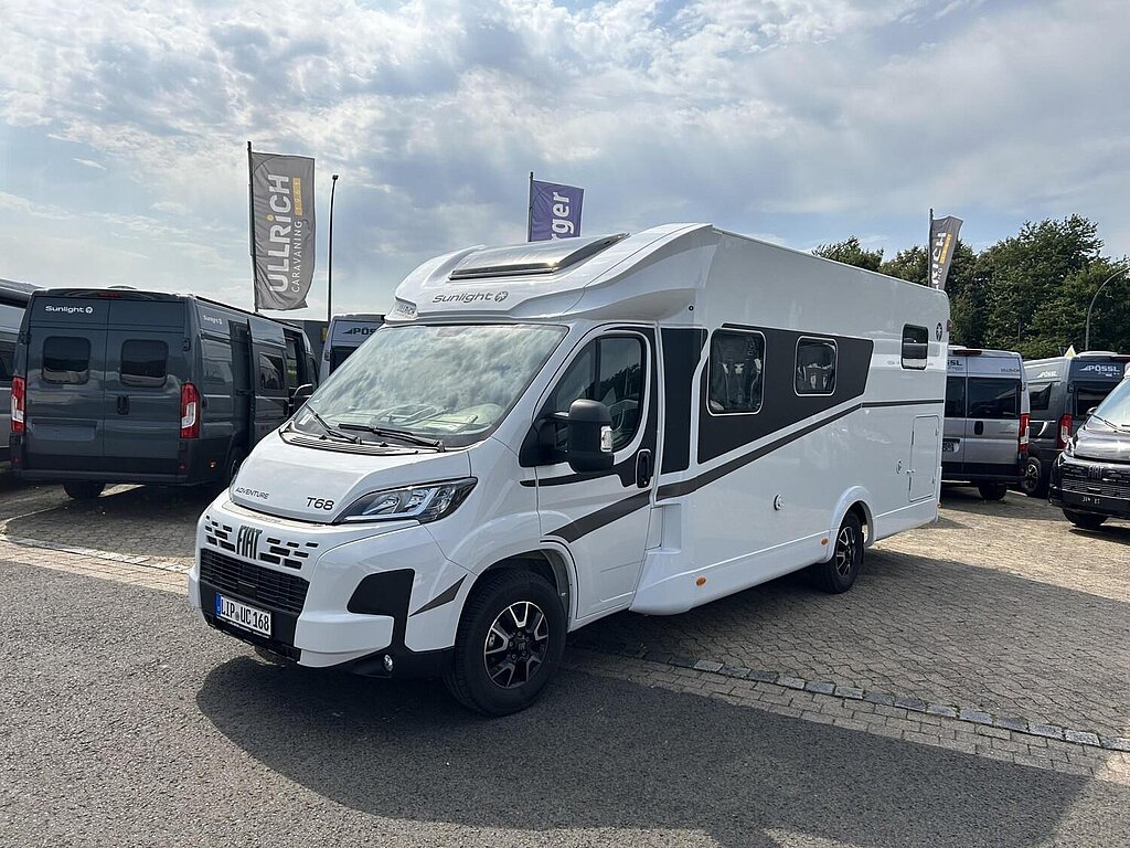 Adventure Ausstattung 68 (Fiat Ducato 3.500 kg | 2.2 Multijet | 103 kW | 140 PS Euro 6 | 6-Gang-Schaltgetriebe, Chassisfarbe Weiß, Adventure Beklebung, Wohnwelt Adventure, Design Applikation Heck, Fenster in Fronthaube, Rahmenfenster, 2. Außenstauraumklappe (Größe modellabhängig), Großer Kühlschrank 156 l mit separatem Frosterfach 29 l, Bettenumbau Einzelbett zu Doppelbett, Paket One Black (Markise, Fahrradträger 3-fach), Bridge Light, Komfort Eingangstür mit Fenster, Fliegengittertür (einteilig), Panoramadachhaube 70 x 50 cm, Klarglasdachhaube 40 x 40 cm, Stoßfänger lackiert, Skid Plate Schwarz, Nebelscheinwerfer, Lenkrad & Schaltknauf in Lederausführung, Luftauslässe mit Applikationen Silber (Techno-Trim), 16" Alufelgen Bi-Color)