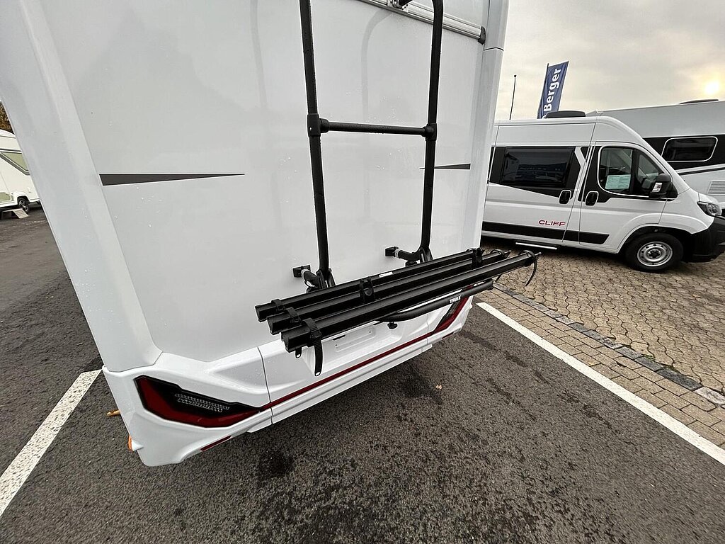 Adventure Ausstattung 68 (Fiat Ducato 3.500 kg | 2.2 | 103 kW | 140 PS Euro 6 | 6-Gang-Schaltgetriebe, Fiat Weiß, Adventure Beklebung, Wohnwelt Adventure, Design Applikation Heck, Fenster in Fronthaube, Rahmenfenster, 2. Außenstauraumklappe (Größe modellabhängig), Großer Kühlschrank 156 l mit separatem Frosterfach 29 l, Bettenumbau Einzelbett zu Doppelbett, Paket One Black (Markise, Fahrradträger 3-fach), Bridge Light, Komfort Eingangstür mit Fenster, Fliegengittertür (einteilig), Panoramadachhaube 70 x 50 cm, Klarglasdachhaube 40 x 40 cm, Stoßfänger lackiert, Skid Plate Schwarz, Nebelscheinwerfer, Lenkrad & Schaltknauf in Lederausführung, Luftauslässe mit Applikationen Silber (Techno-Trim), 16" Alufelgen Bi-Color)