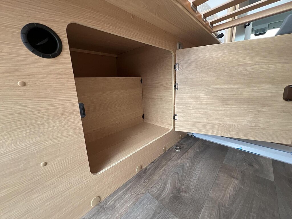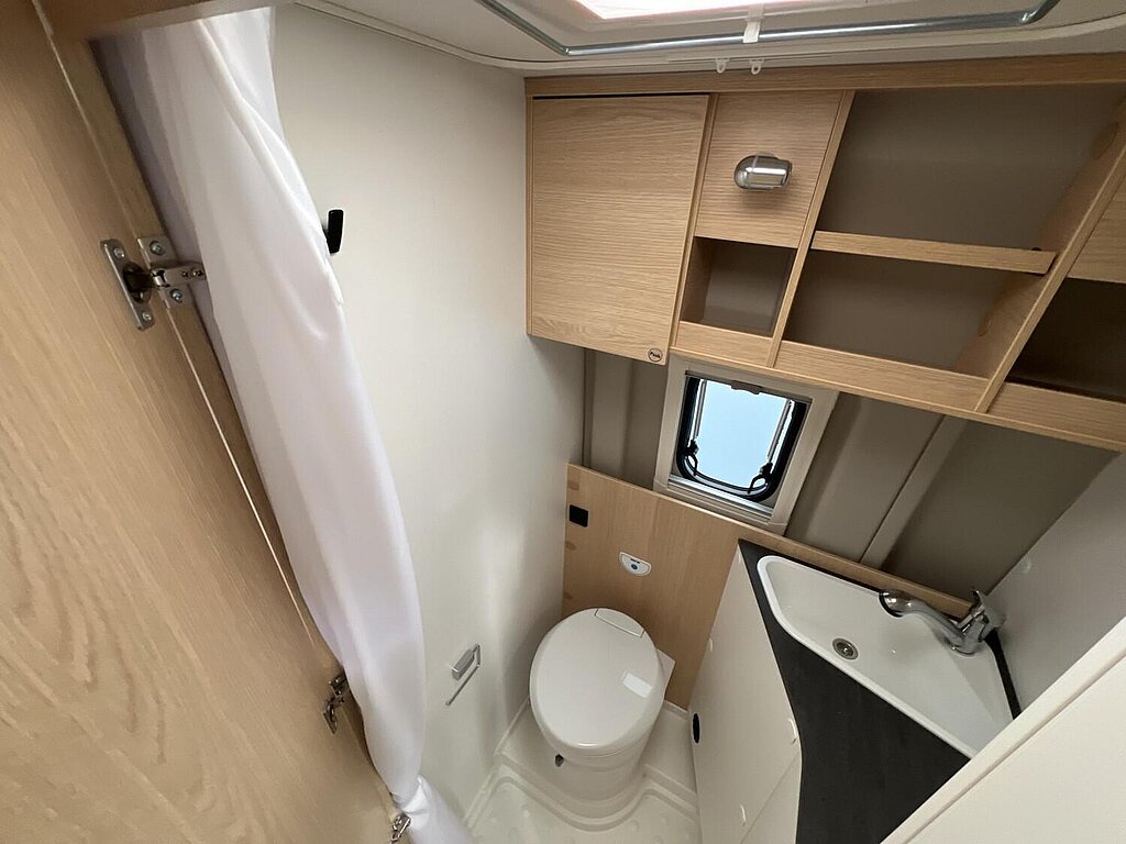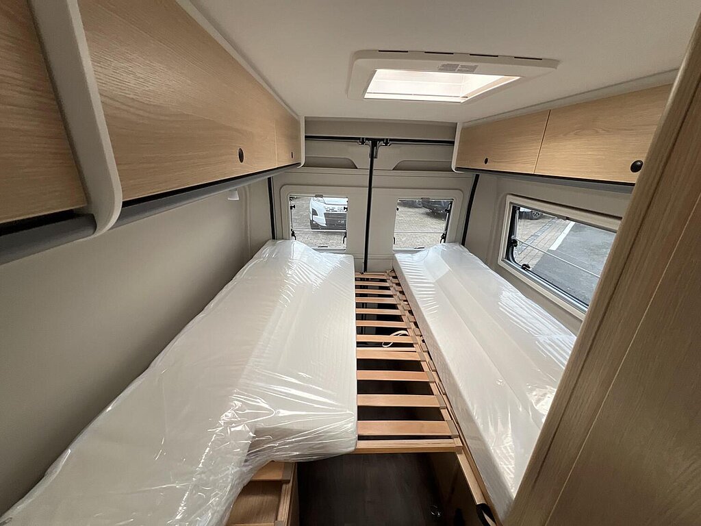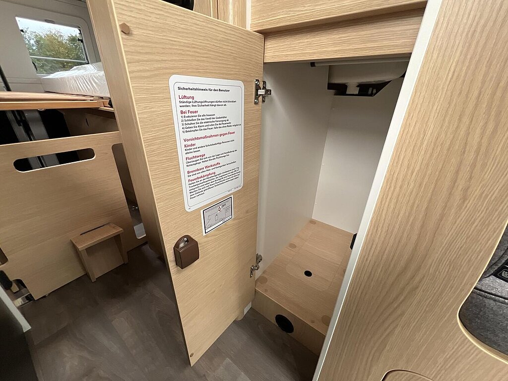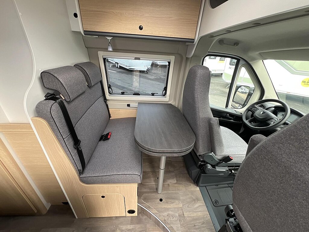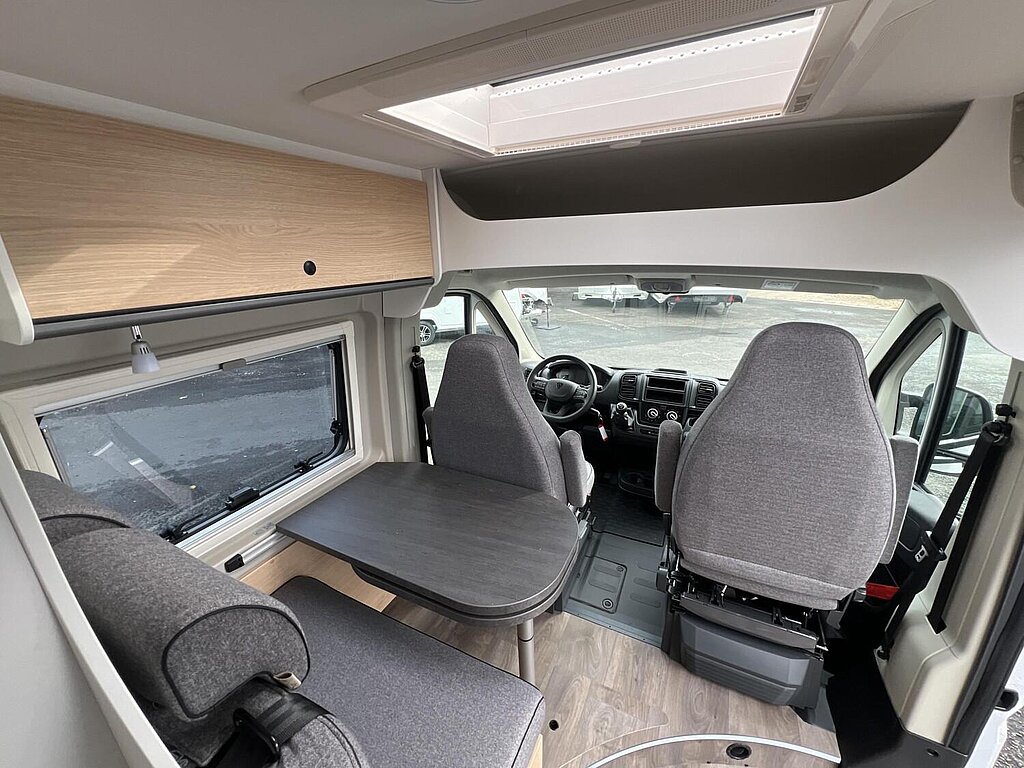 Basic Paket (Panoramadachhaube 70 x 50 cm, Duschausstattung, Fenster im Bad, Kleiderstange in der Nasszelle, Breite Einstiegsstufe, Drehplatte für Tischerweiterung an der Sitzgruppe)