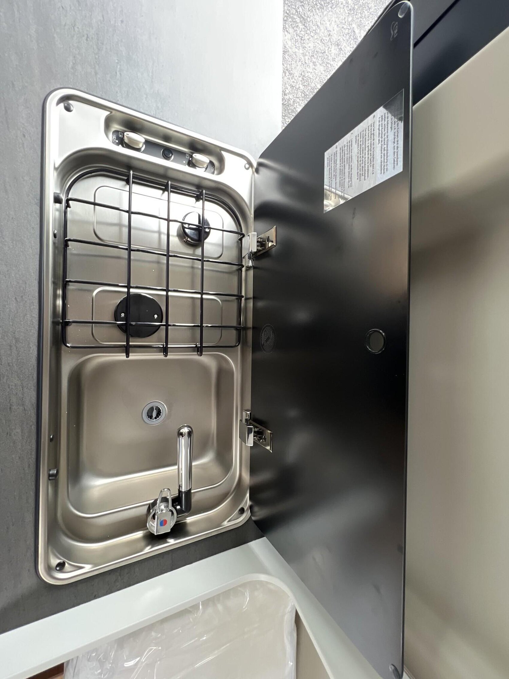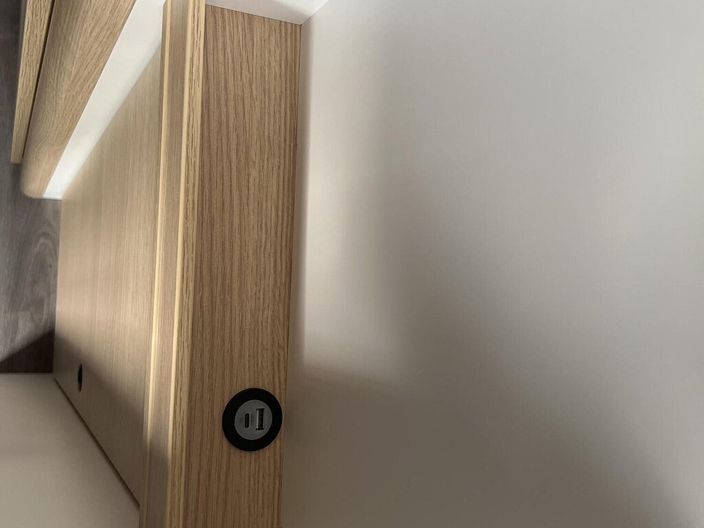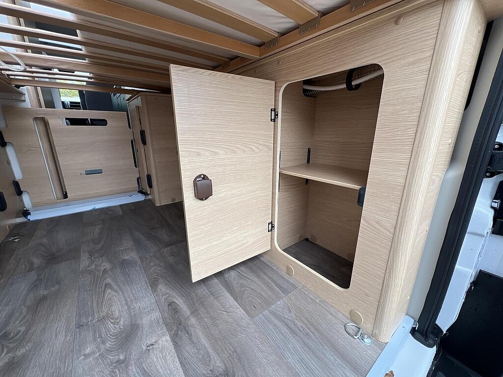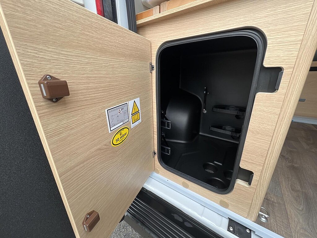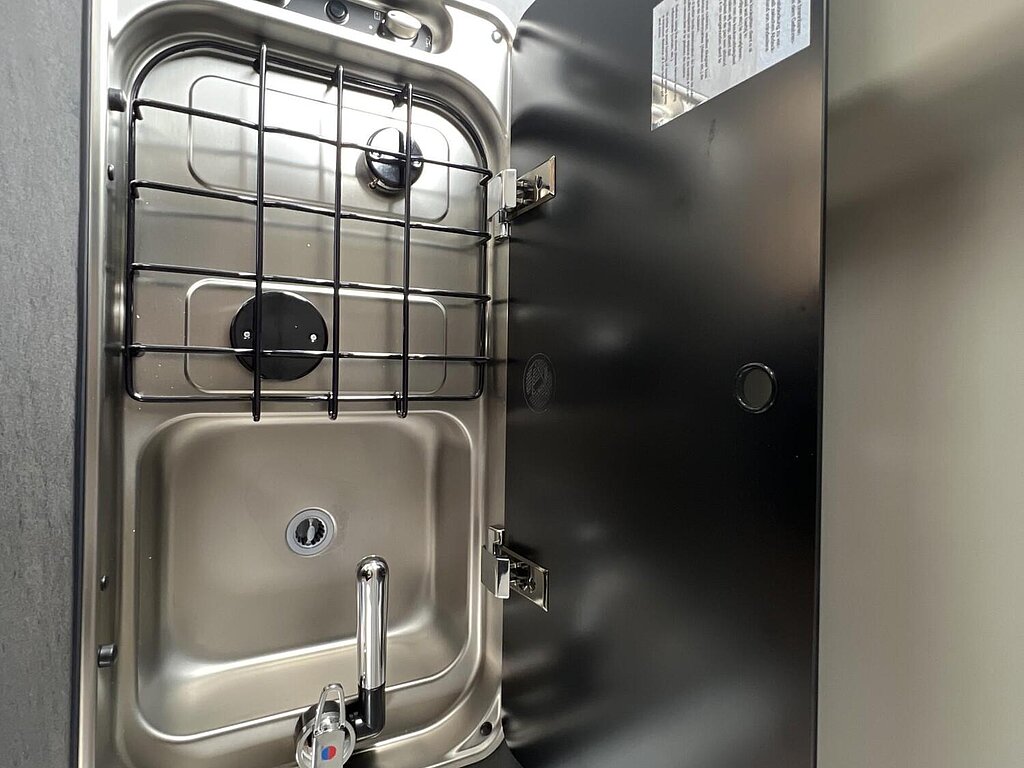 Basic Paket (Panoramadachhaube 70 x 50 cm, Duschausstattung, Fenster im Bad, Kleiderstange in der Nasszelle, Breite Einstiegsstufe, Drehplatte für Tischerweiterung an der Sitzgruppe)