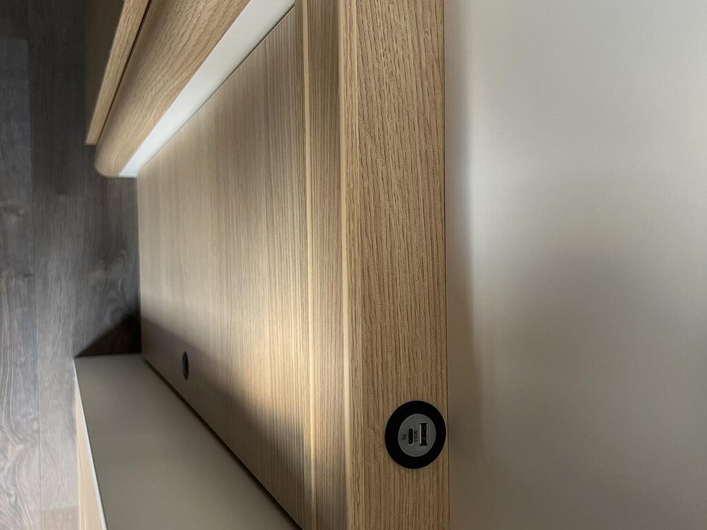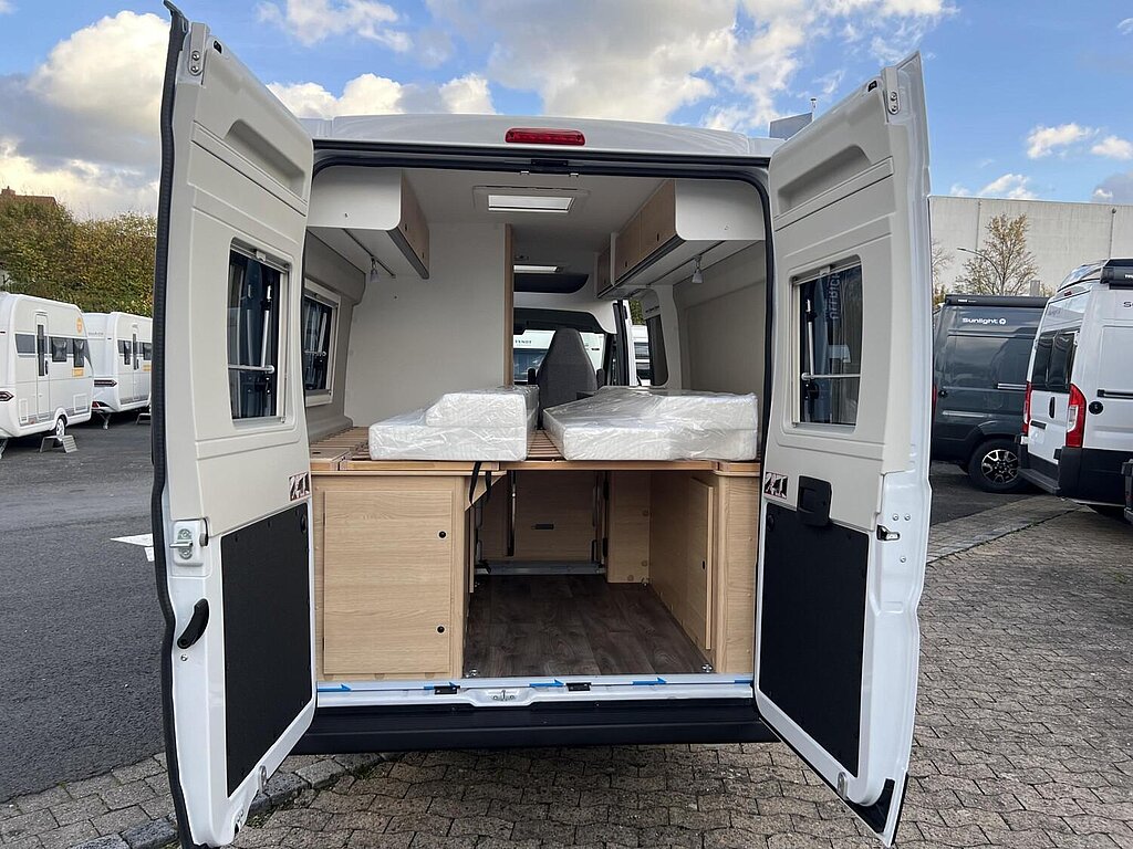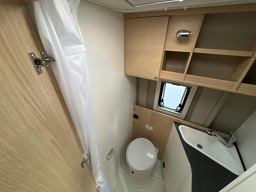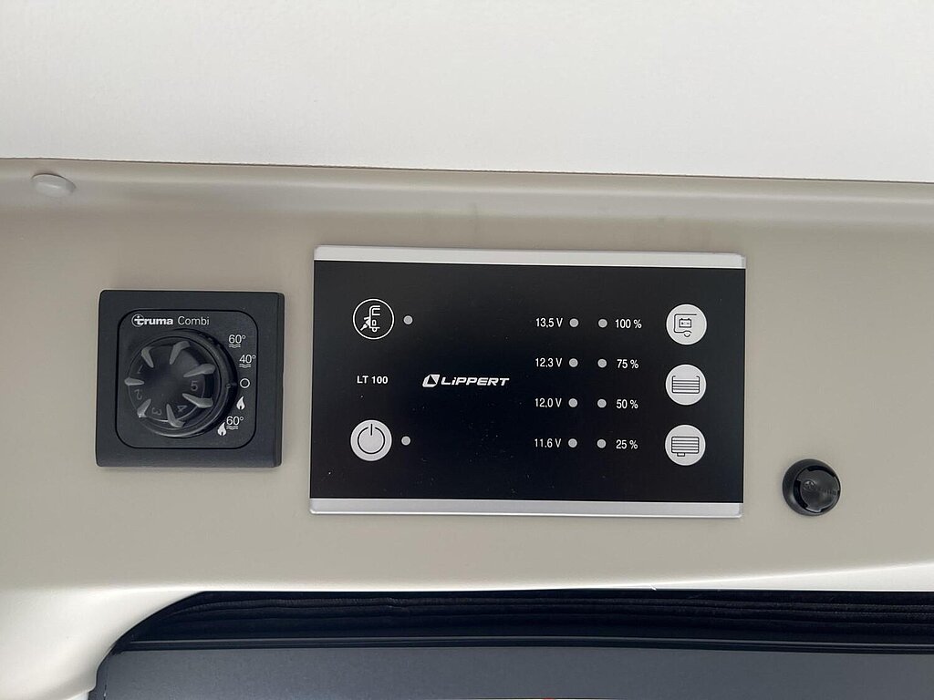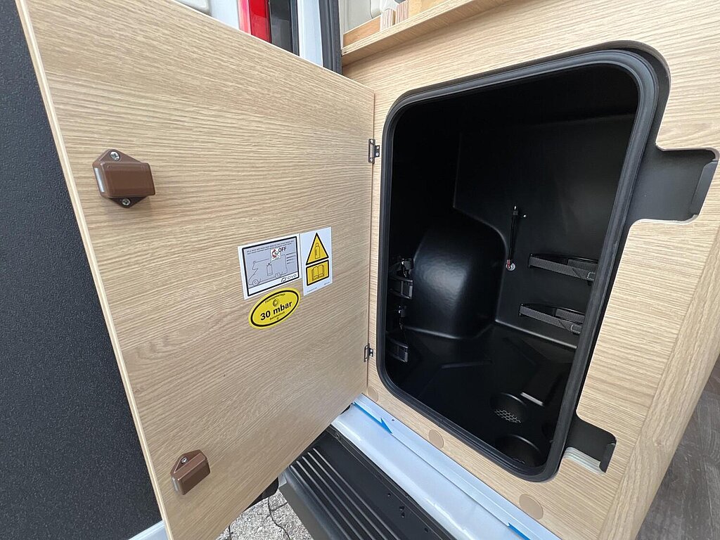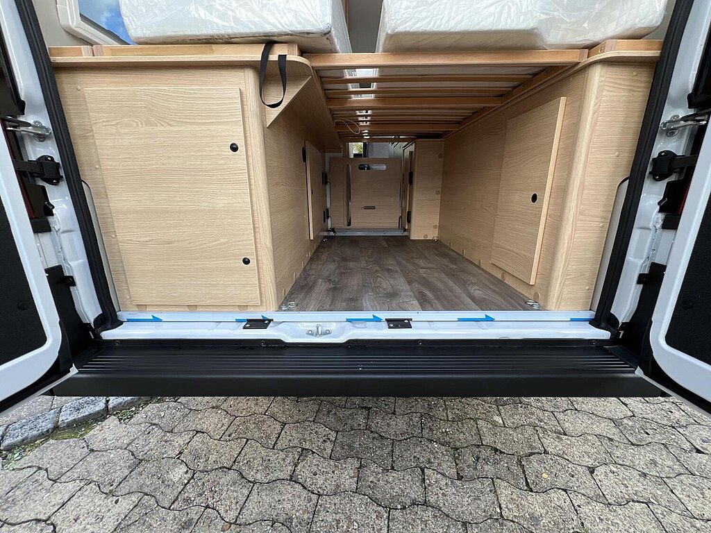 Basic Paket (Panoramadachhaube 70 x 50 cm, Duschausstattung, Fenster im Bad, Kleiderstange in der Nasszelle, Breite Einstiegsstufe, Drehplatte für Tischerweiterung an der Sitzgruppe)