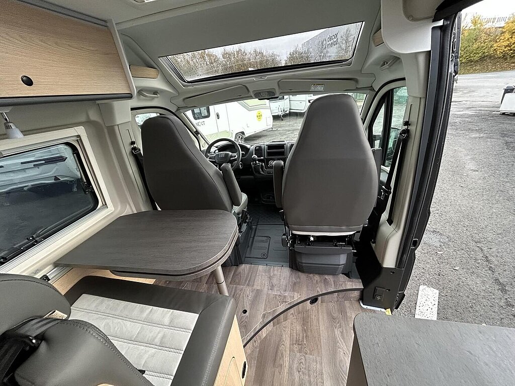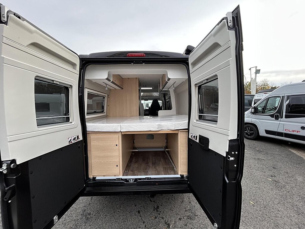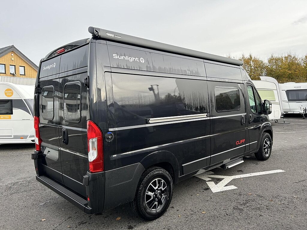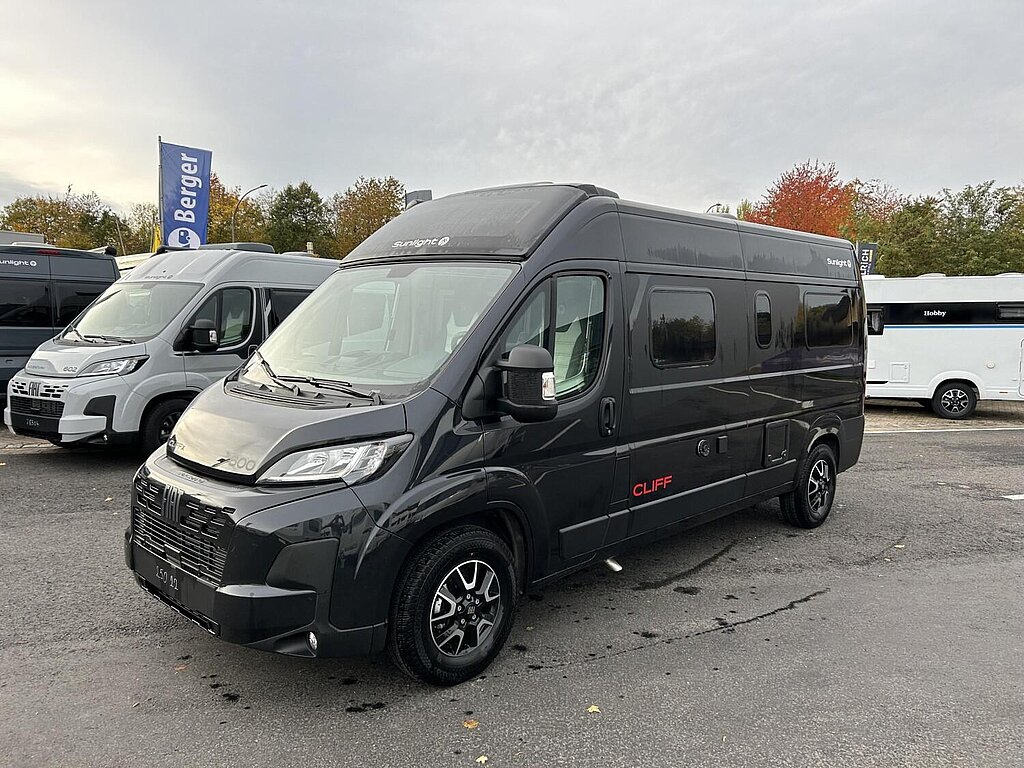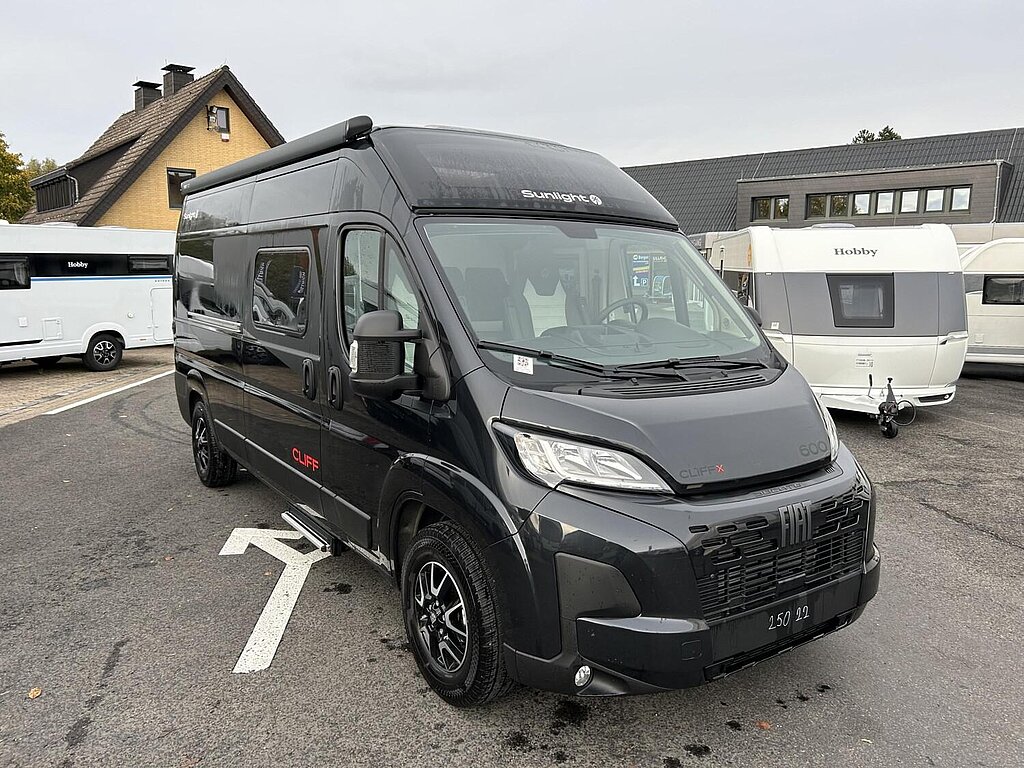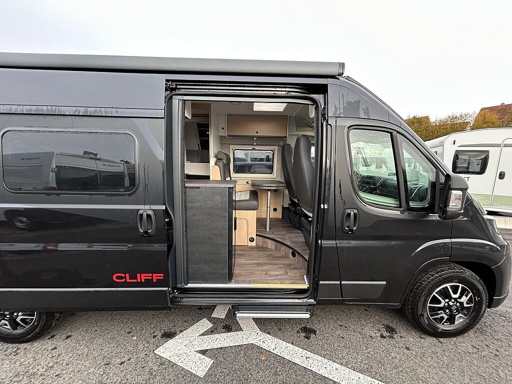 Cliff X Ausstattung 600 (Fiat Ducato 3.500 kg | 2.2 Multijet | 103 kW | 140 PS Euro 6 | 6-Gang-Schaltgetriebe, Fiat, Adventure Beklebung, Wohnwelt Adventure, LED Beleuchtung Dachschrank, Dachstauschrank Heck umlaufend, Skyview, Rahmenfenster, Variobad, Markise (schwarz), Panoramadachhaube 70 x 50 cm, Duschausstattung, Fenster im Bad, Kleiderstange in der Nasszelle, Breite Einstiegsstufe, Drehplatte für Tischerweiterung an der Sitzgruppe, Stoßfänger lackiert, Skid Plate Schwarz, Nebelscheinwerfer, Lenkrad & Schaltknauf in Lederausführung, Luftauslässe mit Applikationen Silber (Techno-Trim), 16" Alufelgen Bi-Color)