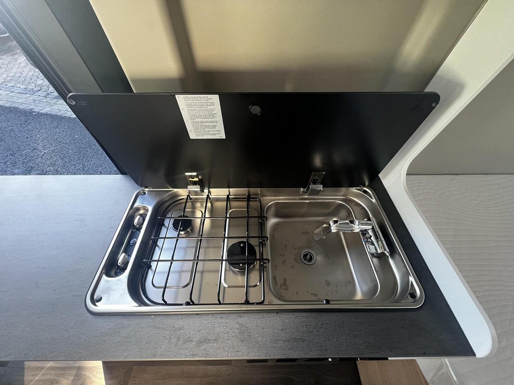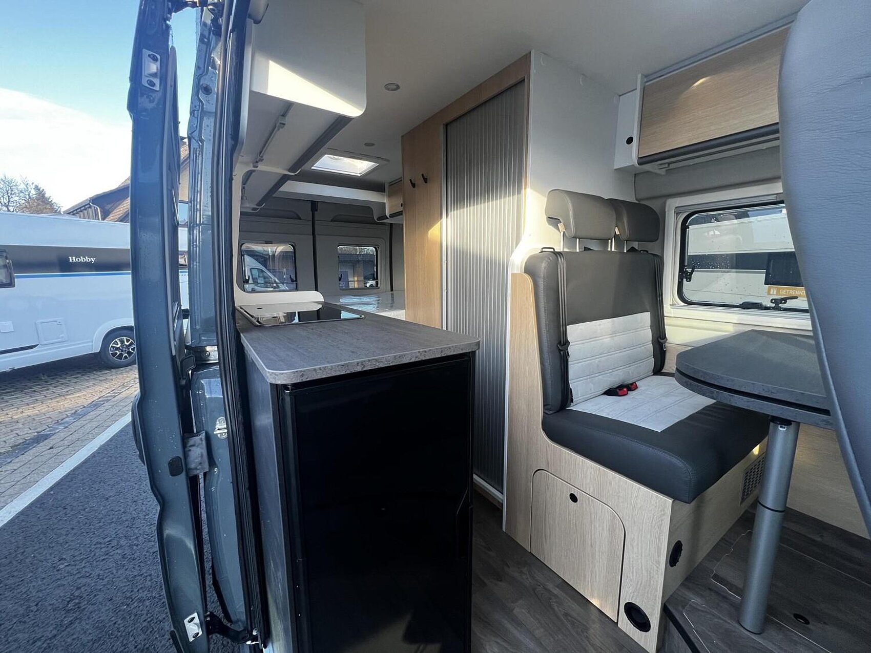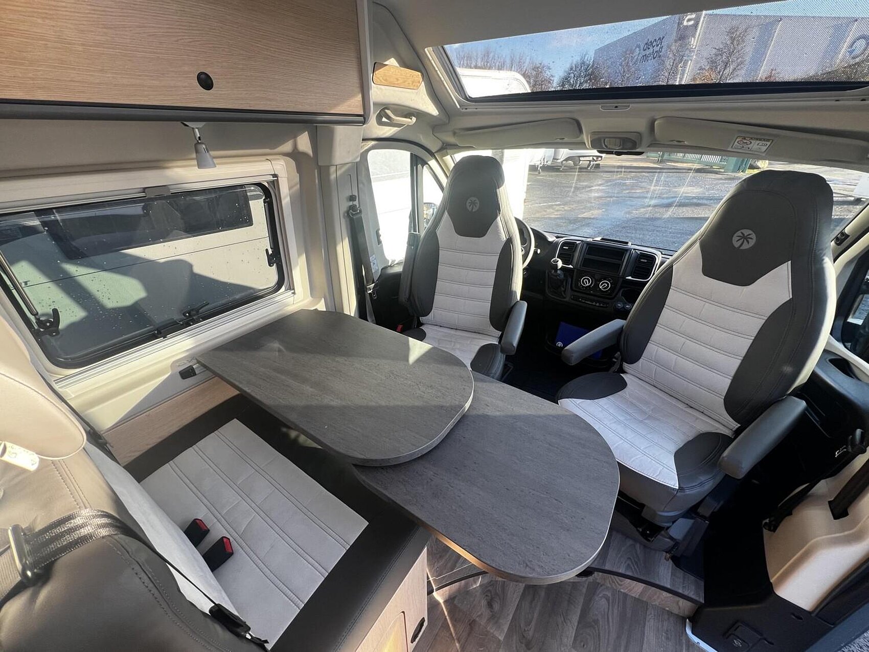 Cliff X Ausstattung 600 (Fiat Ducato 3.500 kg | 2.2 | 103 kW | 140 PS Euro 6 | 6-Gang-Schaltgetriebe, Fiat Weiß, Adventure Beklebung, Wohnwelt Adventure, LED Beleuchtung Dachschrank, Dachstauschrank Heck umlaufend, Skyview, Rahmenfenster, Variobad, Markise (schwarz), Panoramadachhaube 70 x 50 cm, Duschausstattung, Fenster im Bad, Kleiderstange in der Nasszelle, Breite Einstiegsstufe, Drehplatte für Tischerweiterung an der Sitzgruppe, Stoßfänger lackiert, Skid Plate Schwarz, Nebelscheinwerfer, Lenkrad & Schaltknauf in Lederausführung, Luftauslässe mit Applikationen Silber (Techno-Trim), 16" Alufelgen Bi-Color)