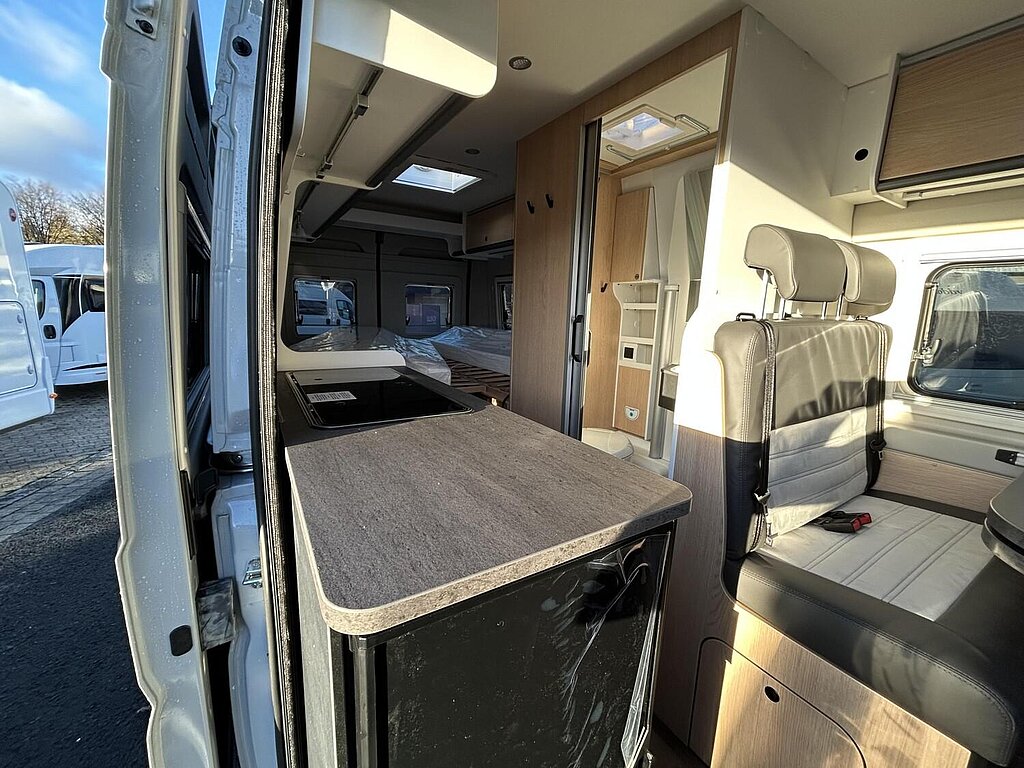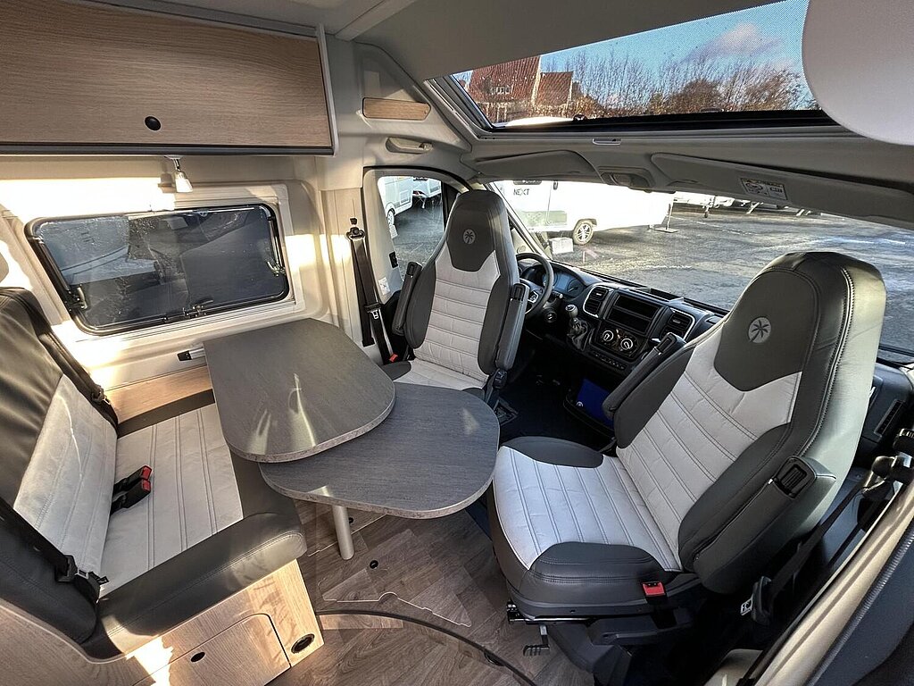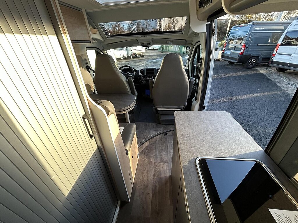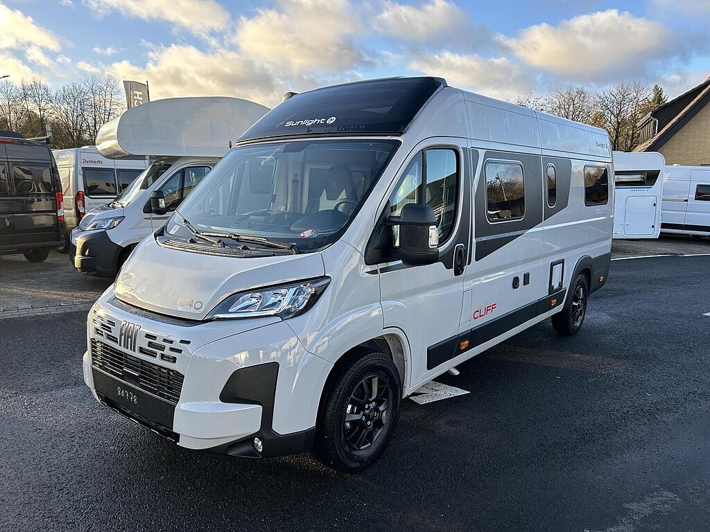 Cliff X Ausstattung 640 (Fiat Ducato 3.500 kg | 2.2 | 103 kW | 140 PS Euro 6 | 6-Gang-Schaltgetriebe, Fiat Weiß, Adventure Beklebung, Wohnwelt Adventure, LED Beleuchtung Dachschrank, Dachstauschrank Heck umlaufend, Skyview, Rahmenfenster, Variobad, Markise (schwarz), Panoramadachhaube 70 x 50 cm, Duschausstattung, Fenster im Bad, Kleiderstange in der Nasszelle, Breite Einstiegsstufe, Drehplatte für Tischerweiterung an der Sitzgruppe, Stoßfänger lackiert, Skid Plate Schwarz, Nebelscheinwerfer, Lenkrad & Schaltknauf in Lederausführung, Luftauslässe mit Applikationen Silber (Techno-Trim), 16" Alufelgen Bi-Color)