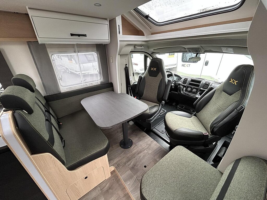 Editionsausstattung XX 68 (Fiat Ducato 3.500 kg | 2.2 Multijet | 103 kW | 140 PS Euro 6 | 6-Gang-Schaltgetriebe, Chassisfarbe Schwarz inkl. Seitenwand in Silberglattblech, XX Editionsbeklebung, Wohnwelt XX Edition mit Echtleder Applikationen, Mobiles Internet (WiFi / LTE Antenne inkl. Router), 22" Smart TV, Design Applikation Heck, Rahmenfenster, Fenster in Fronthaube, 2. Außenstauraumklappe (Größe modellabhängig), Großer Kühlschrank 156 l mit separatem Frosterfach 29 l, Bettenumbau Einzelbett zu Doppelbett, Paket One Black (Markise, Fahrradträger 3-fach), Bridge Light, Komfort Eingangstür mit Fenster, Fliegengittertür (einteilig), Panoramadachhaube 70 x 50 cm, Klarglasdachhaube 40 x 40 cm, Stoßfänger lackiert, Skid Plate Schwarz, Nebelscheinwerfer, Lenkrad & Schaltknauf in Lederausführung, Luftauslässe mit Applikationen Silber (Techno-Trim), 16" Alufelgen schwarz matt)